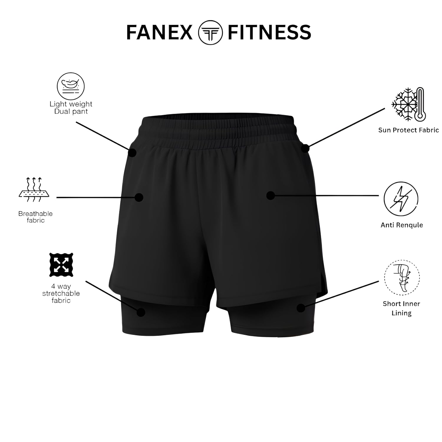 Experience ultimate comfort and performance with these FANEX FITNESS sports shorts designed for women’s active lifestyle. The innovative double-layer design features inner compression shorts paired with breathable outer shorts, providing superior support and coverage during intense workouts. These versatile athletic shorts come equipped with convenient pockets to store your essentials while running or exercising. The quick-dry fabric technology ensures moisture-wicking properties, keeping you cool and comfortable throughout your workout sessions. Perfect for running, gym workouts, tennis, or any high-intensity activities, these above-knee length shorts offer unrestricted movement. The lightweight construction and elastic waistband deliver a secure, comfortable fit without compromising on style. The thoughtfully designed shorts combine functionality with athletic aesthetics, making them an essential addition to your workout wardrobe. Whether you’re hitting the gym, going for a run, or enjoying outdoor sports, these shorts provide the perfect blend of comfort, style, and performance.