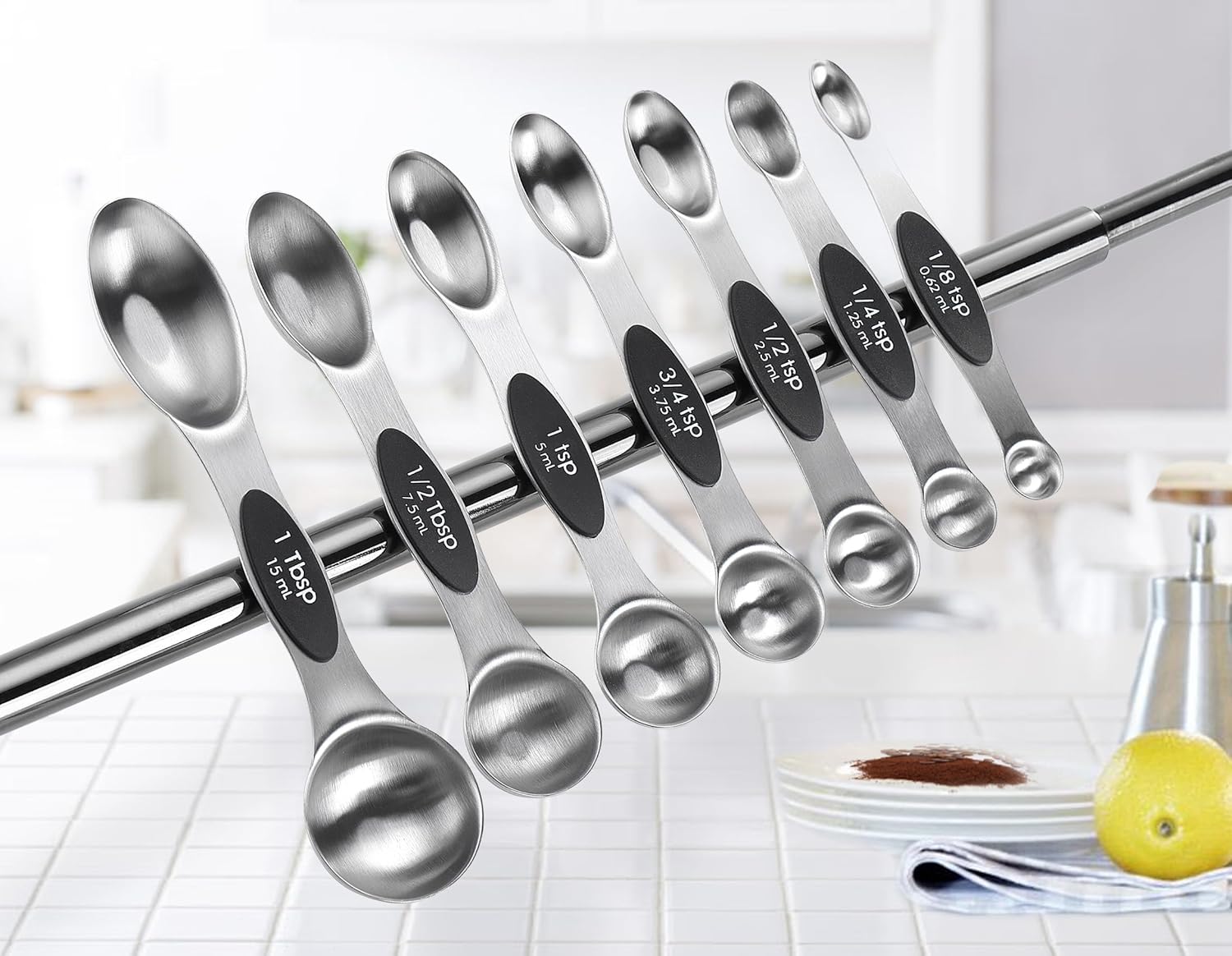 Magnetic For Easy Use And Storage – These magnetic cups and spoons let you use one spoon or cup at a time and then they nest together for easy storage. Quickly grab the spoon or cup you need without having to fumble with opening and closing a ring. They even have U.S. and metric measurement markings that are easy to read and won’t fade or rub off.