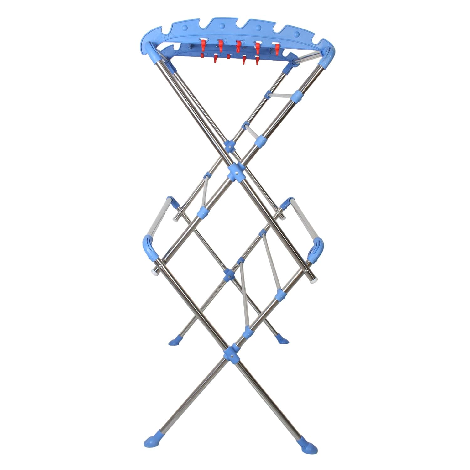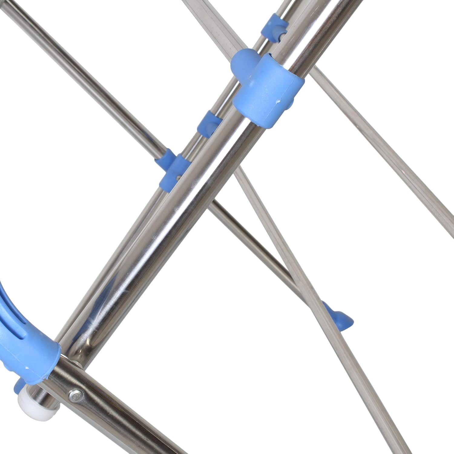 Streamline your laundry routine with the SS Sumo Pre‑Assembled Cloth Drying Stand, proudly made in India. Built from sturdy stainless-steel rods and quality plastic joinery, this heavy-duty rack stands up to regular wear and tear, indoors or on balconies. Featuring two tiers with 13–15 robust rails, it offers around 3 feet of drying space per tier (roughly 30–40 ft total), enough for daily loads or larger bedding items. The no-assembly design means you can start using it immediately, while its compact folded size (103 × 29 × 11 cm) ensures easy storage when not in use. Built to hold between 25–40 kg of laundry, it’s well-suited for families. Added hanger hooks increase functionality, letting shirts, pants, or delicates air-dry neatly. Whether you need a dependable indoor rack or a weather-resistant balcony stand, the silver-and-blue SS Sumo delivers durable performance with convenience.