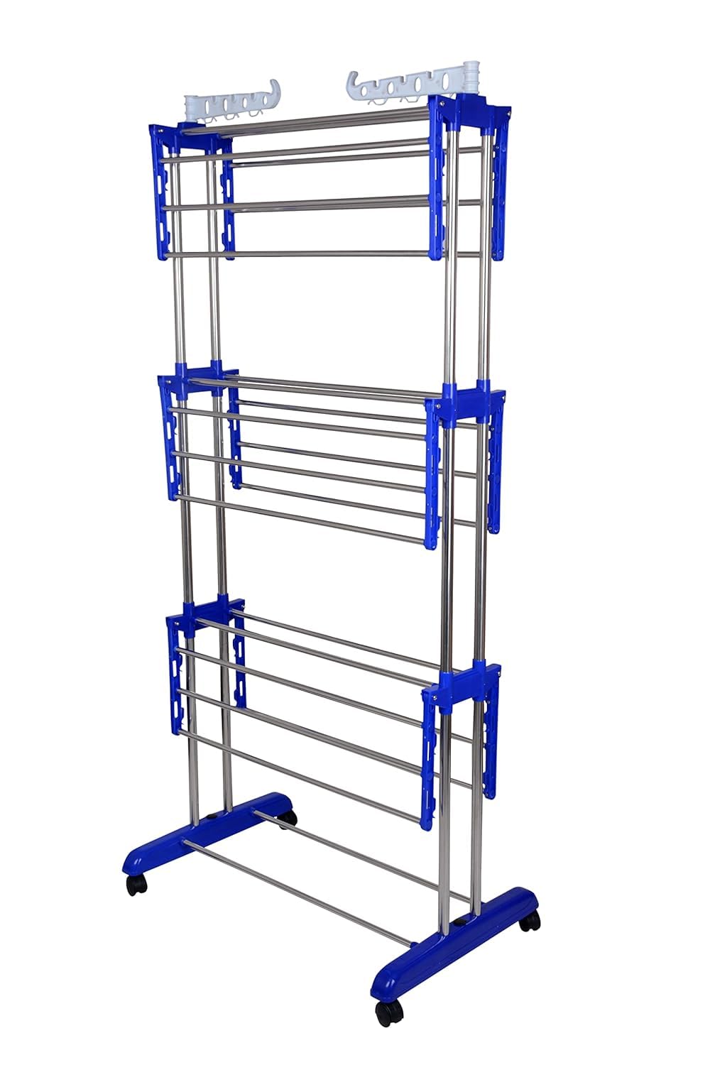 Introducing the Mega Clothing Stand in Royal Blue – the ultimate solution for your garment organization needs. This stylish garment stand features a durable steel hanger and a 3-tier folding design, perfect for hanging clothes in your bedroom or balcony. Use it as a clothes hanger for drying or as a stand for clothes organization. The clothes stand is made from high-quality steel, ensuring longevity and stability. Ideal for drying clothes, this versatile hanging stand for clothes fits seamlessly into any space. Whether you need a hanger stand for clothes for the bedroom or a wall clothes stand for drying, the Mega Clothing Stand is your go-to choice. Keep your garments neatly arranged and dry with this functional and elegant clothes stand.