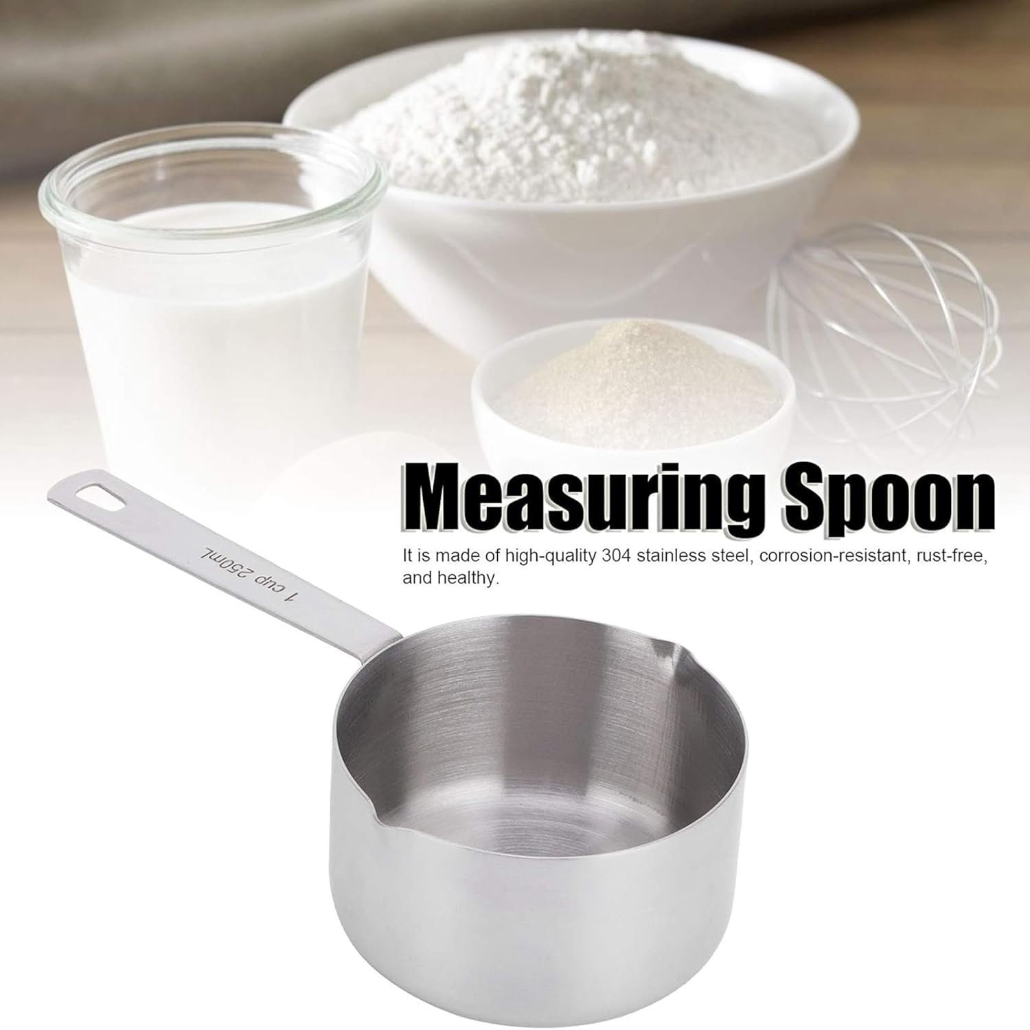 Stainless Steel Measuring Cups Set is your ultimate kitchen companion for precise cooking and baking. Made from premium food-grade stainless steel, it’s rustproof, durable, and built to last. Includes 4 essential sizes: 1 cup, 1/2 cup, 1/3 cup, and 1/4 cup with clear engraved markings. Laser-etched measurements in ml and cups ensure accuracy that won’t fade over time. Strong, ergonomic handles provide a comfortable grip for daily use. Neatly organized with a detachable ring for compact storage and easy access. Dishwasher safe and easy to clean – a must-have tool for every kitchen!