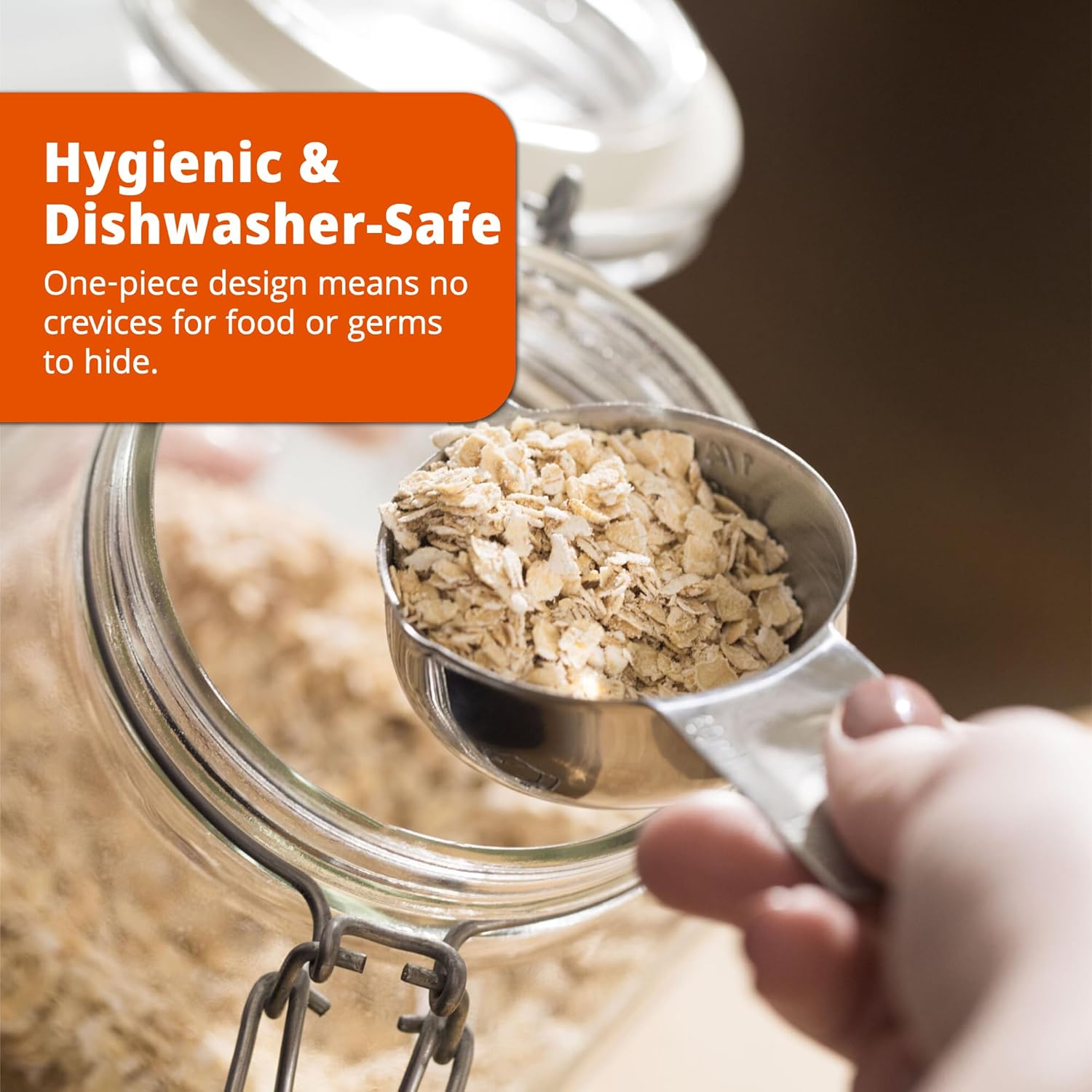 Our handles are SEAMLESSLY INTEGRATED WITH THE CUP, unlike traditional designs that fail at the rivet. This rivet-free, solid construction ensures each measuring cup and spoon is built to last, providing reliable performance every time you measure.