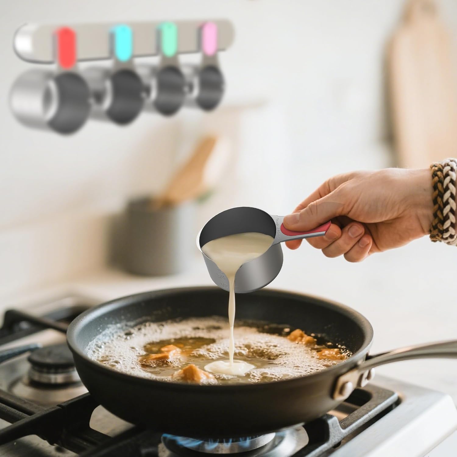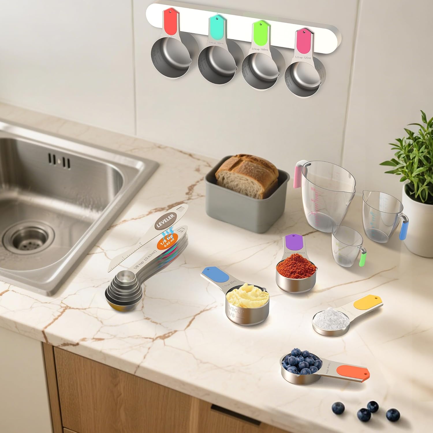 ORGANIZE YOUR KITCHEN: Keep your kitchen neat and tidy with stackable measuring cups and spoons in one convenient set. The removable stainless steel ring makes them easy to store in a drawer or hang on a kitchen hook, and their sleek, classy design makes them great decorations when not in use.