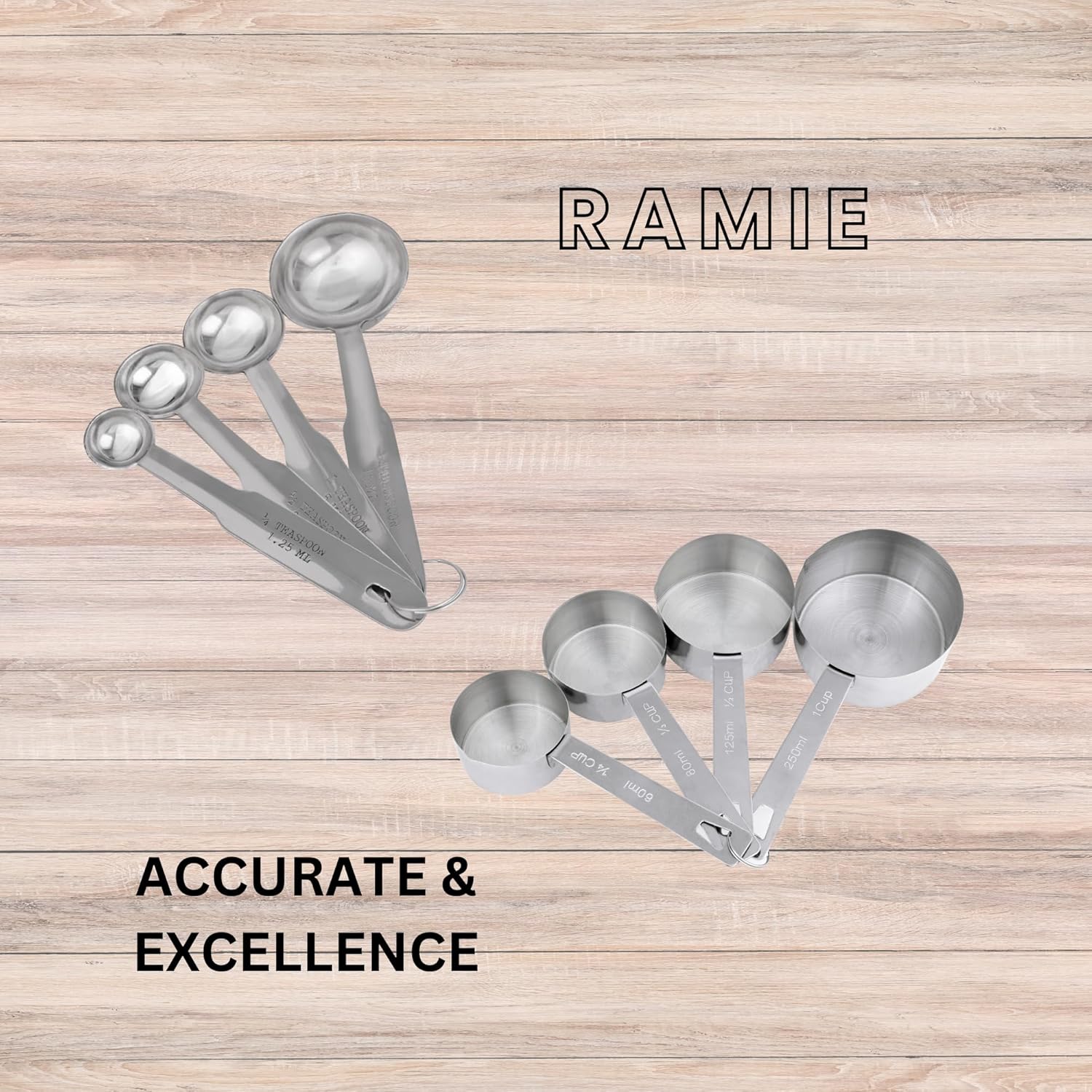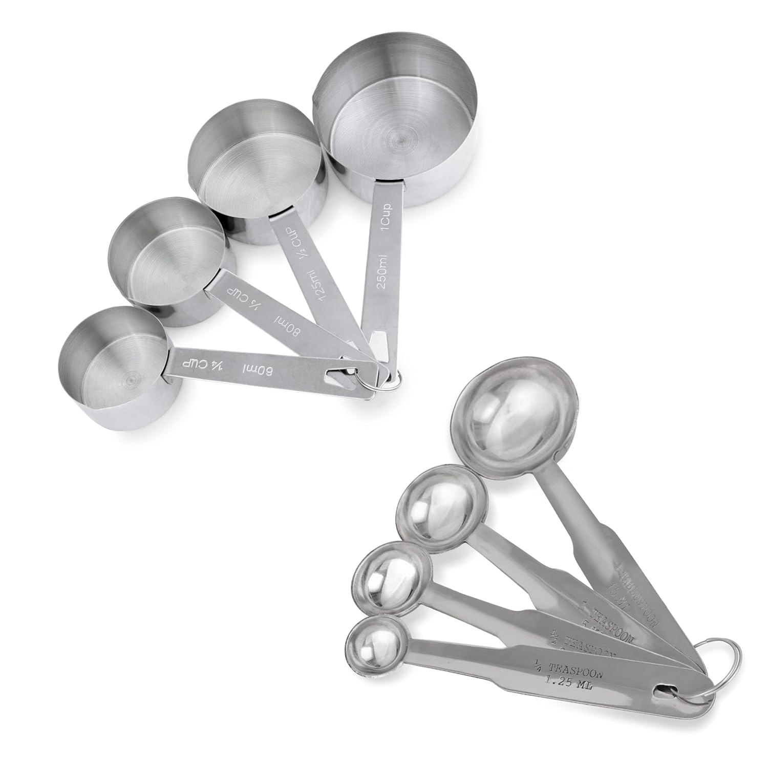 AXIOM Measuring Set of 8 pcs Stainless_Steel Professional Quality for Baking, Cooking, 4 Stackable Measuring Cups and 4 Stackable Measuring Spoons with Measurement Engraving Handle