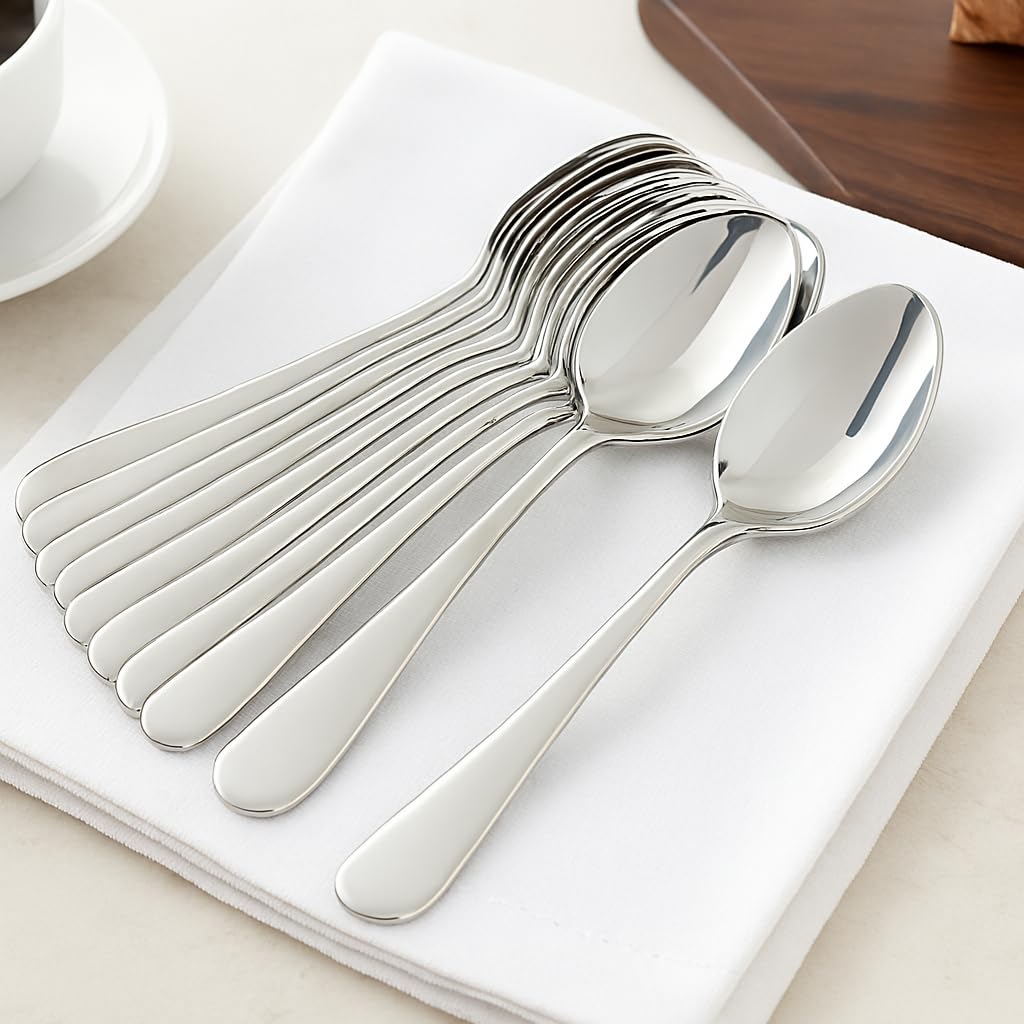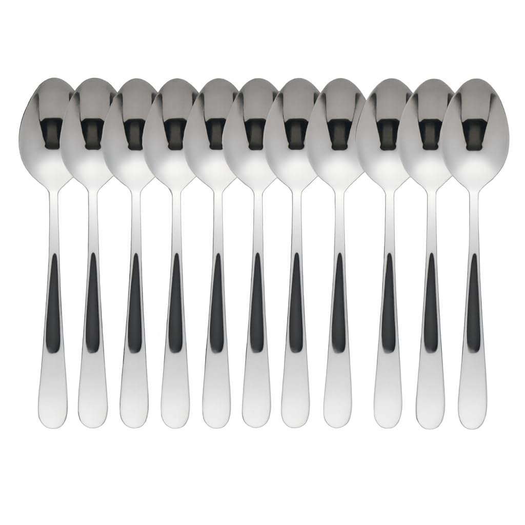 Standard Stainless Steel Dinner Spoons Set of 12 | 16 cm Table Spoons | Mirror Finish Cutlery | Durable Silver Spoons for Home, Hotel & Restaurant Use (Standard 12 Set Spoon)
