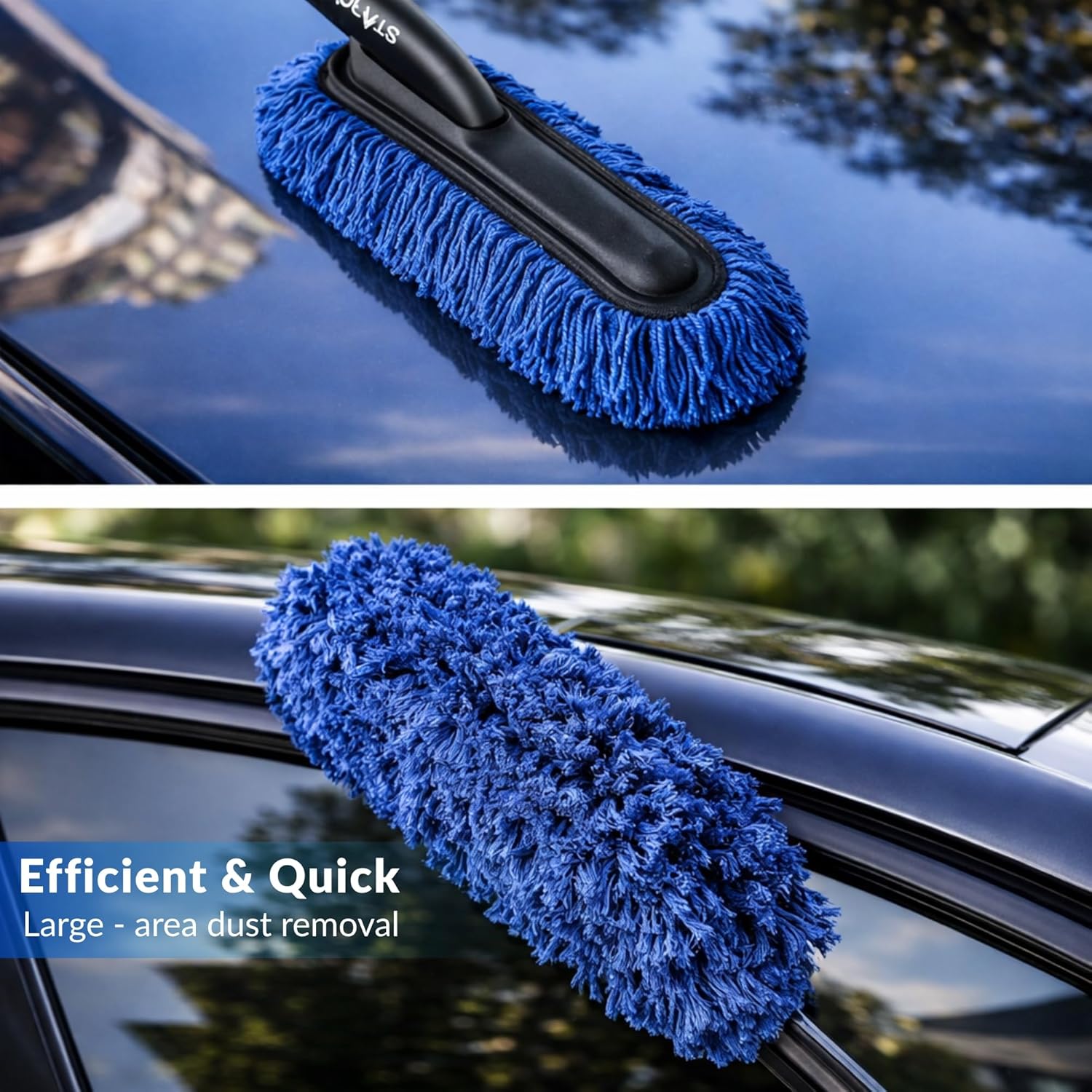 Lint-Free & Scratch-Free Cleaning – Soft microfiber duster safely lifts dust without scratching paint, glass, or interior surfaces.