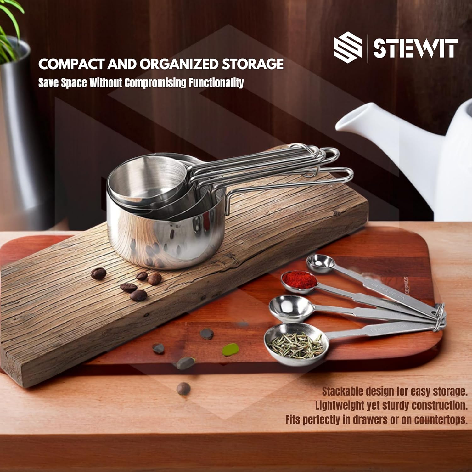 Home Accessories Stewit Complete Kitchen Measuring Set: 4 Stainless Steel Cups & 4 Spoons – Essential Gadgets for Accurate Recipe Preparation Ideal for Baking & Cooking Enthusiasts (Set of 4 Cups & 4 Spoons)