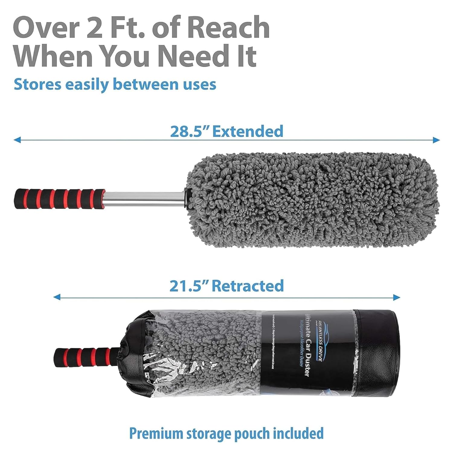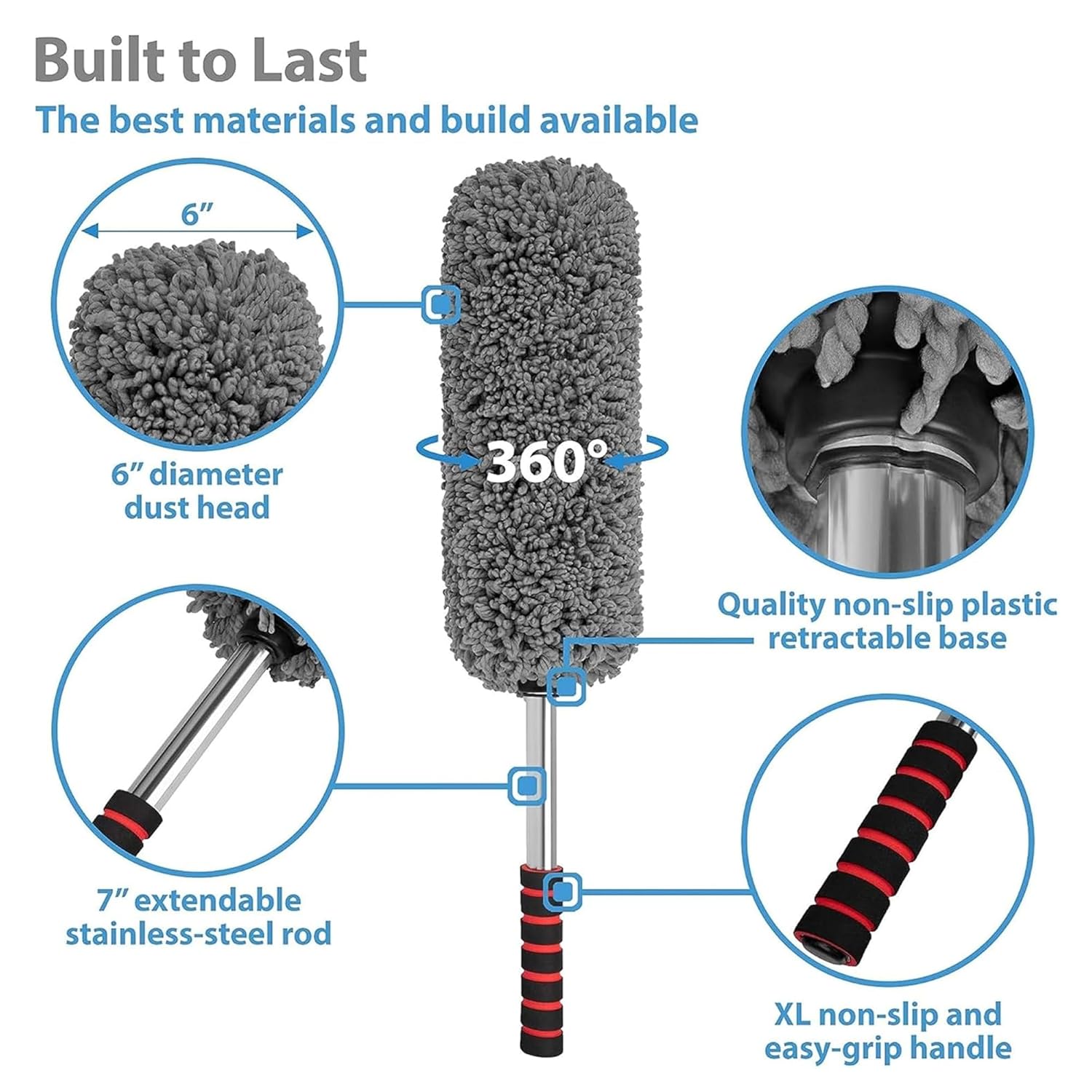 33″ Extendable Car Exterior Duster – Cleaning exterior auto duster is made of thickened stainless steel telescopic rod is sturdy, car brush exterior retractable length is 27″-33″. Extended duster is great for getting into hard to reach areas. perfect for dusting off your car or truck.