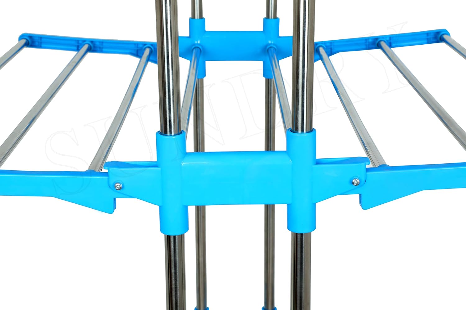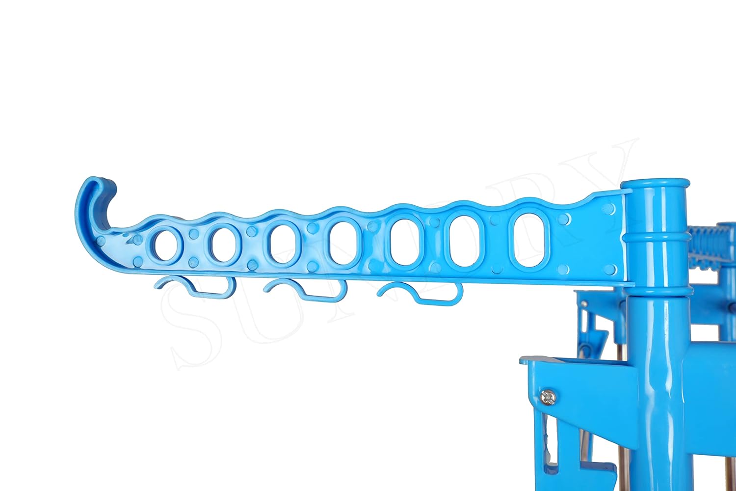 Comes with 6 foldable wings for compact storage; aeroydynamic wings for enhanced stability; and 4 roller caster wheels for effortless movement Flip-out hangers on both sides to add 14 additional hanger holes