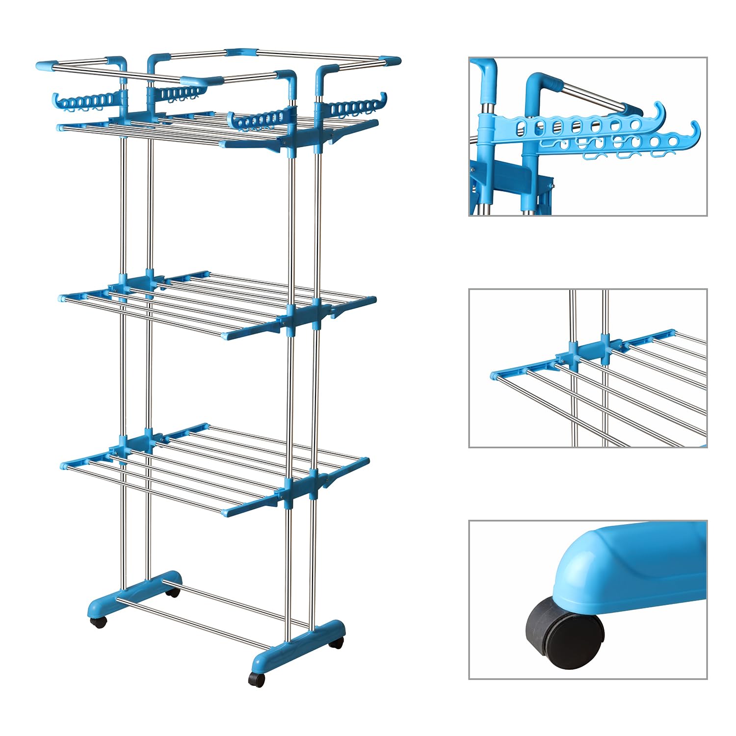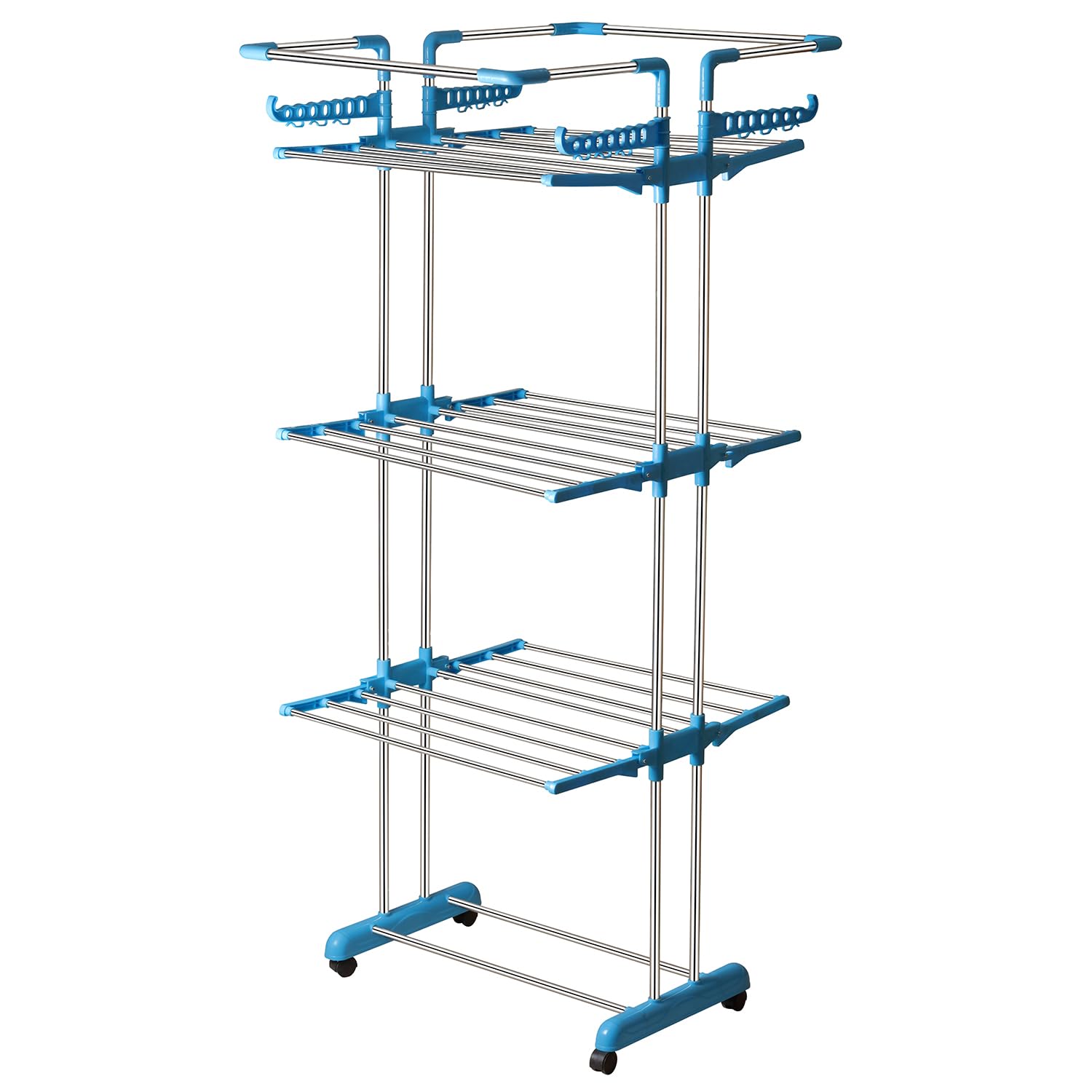 Amazon Brand – Solimo Premium Extra Large Cloth Drying Stand, Stainless Steel (Natural SS & Blue)