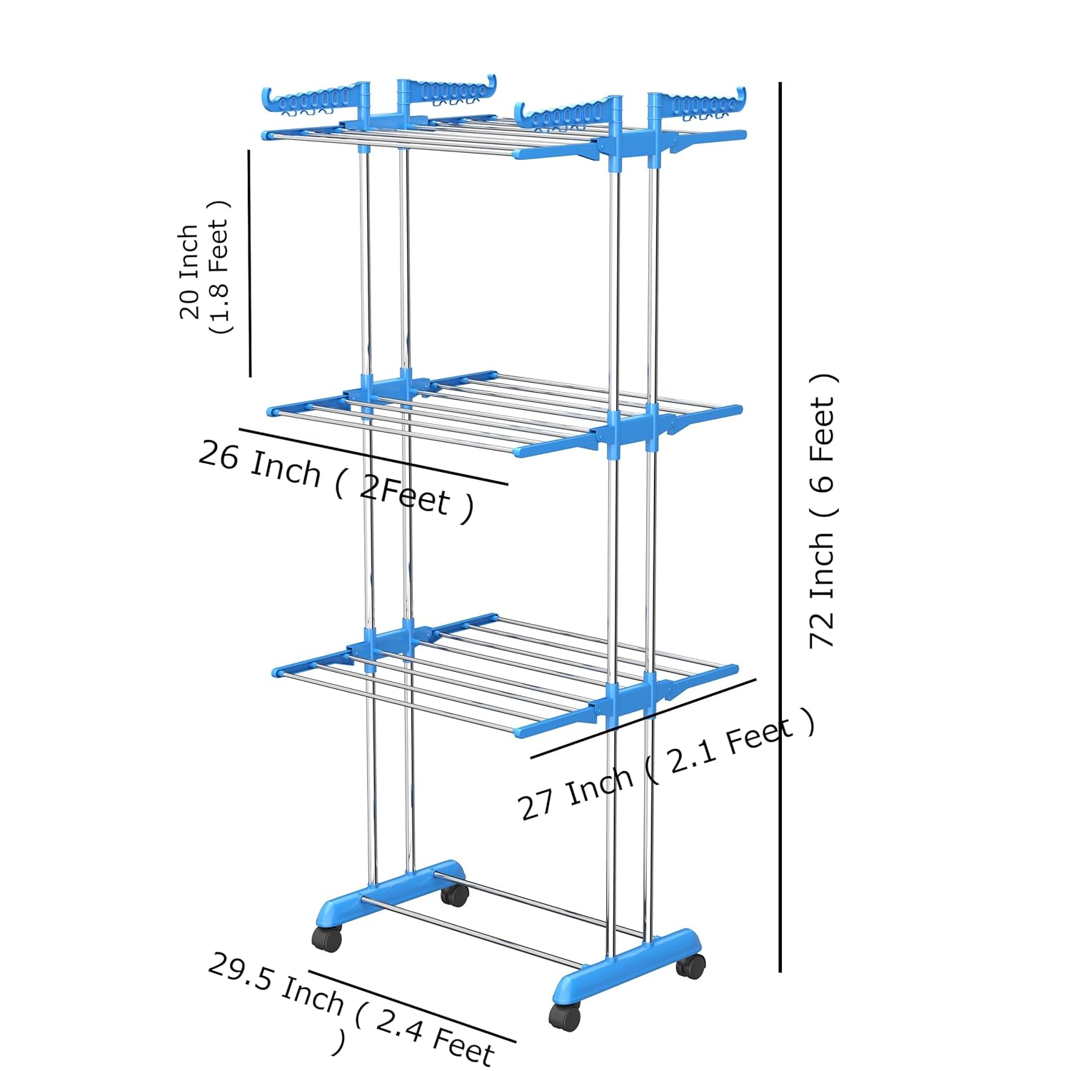 Big space: With 3 tiers made up of 6 retractable trays and 2 Side Wings, each rack can be folded down to conserve space,you can hang dry your laundry onto the multiple rails also can put your shoes on the bases.
