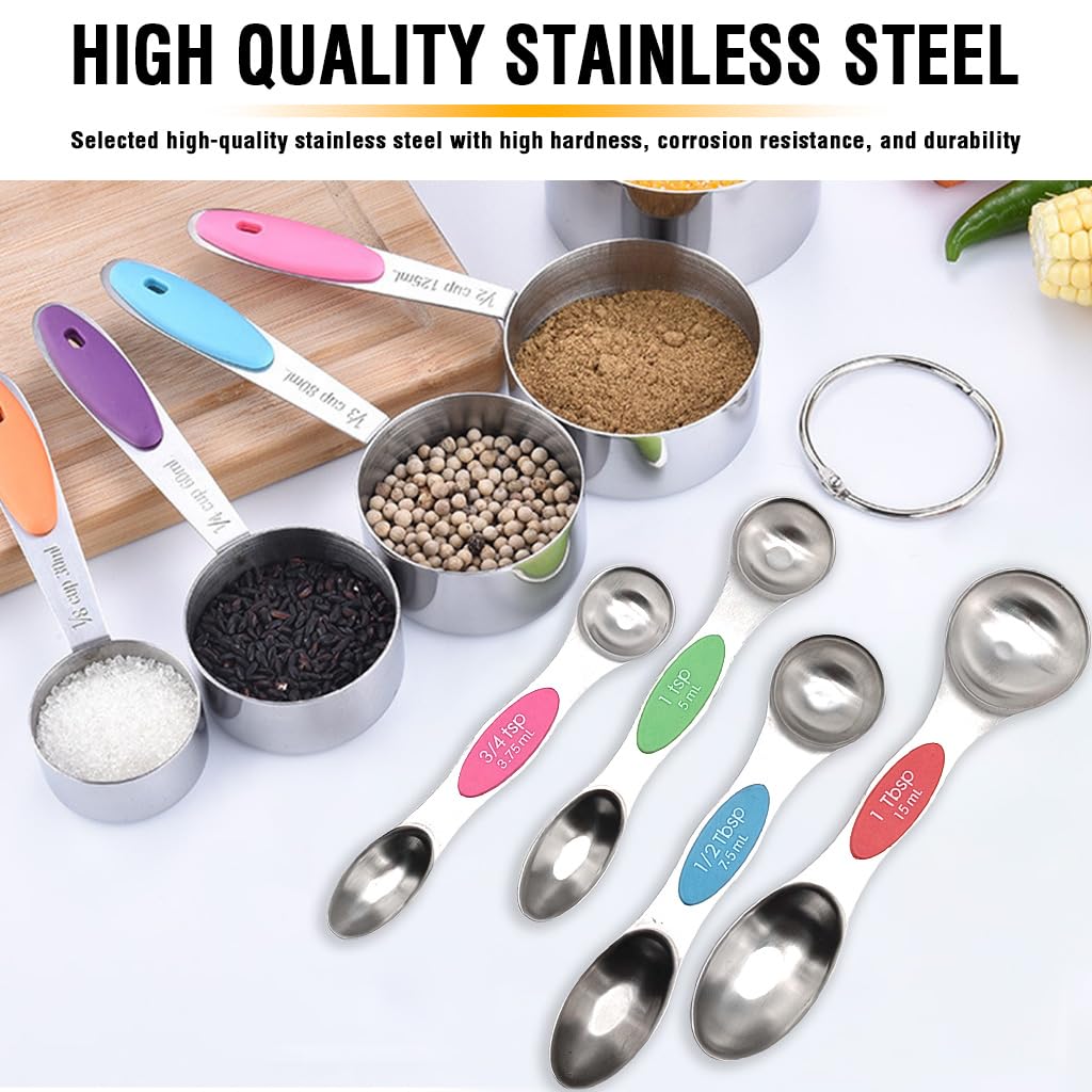 DUAL-END SPOON DESIGN FOR VERSATILITY: The dual-end measuring spoons are a standout feature, allowing convenient measurement of both wet and dry ingredients without mixing residues. This dual head measuring spoon set is especially useful when handling different materials in one recipe. The innovative dual ends make cooking or baking simpler and save time by reducing the need for additional tools.