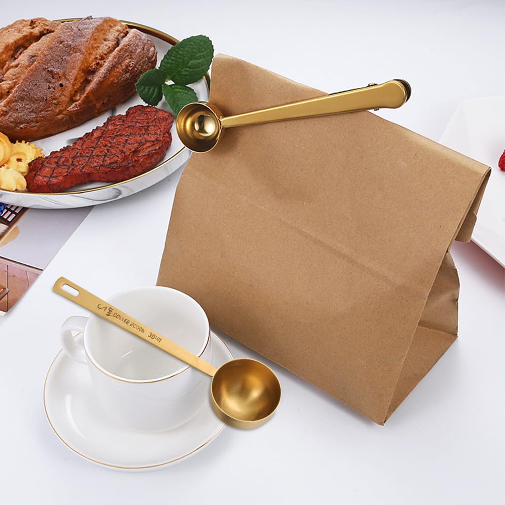INTEGRATED SEALING CLIP FOR ADDED CONVENIENCE: The 2-in-1 measuring spoons set includes an integrated sealing clip, blending functionality with practicality. This innovative design keeps your ingredient bags properly sealed after scooping their contents, eliminating the need for additional clips while maintaining freshness for coffee beans, spices, or other dry ingredients.