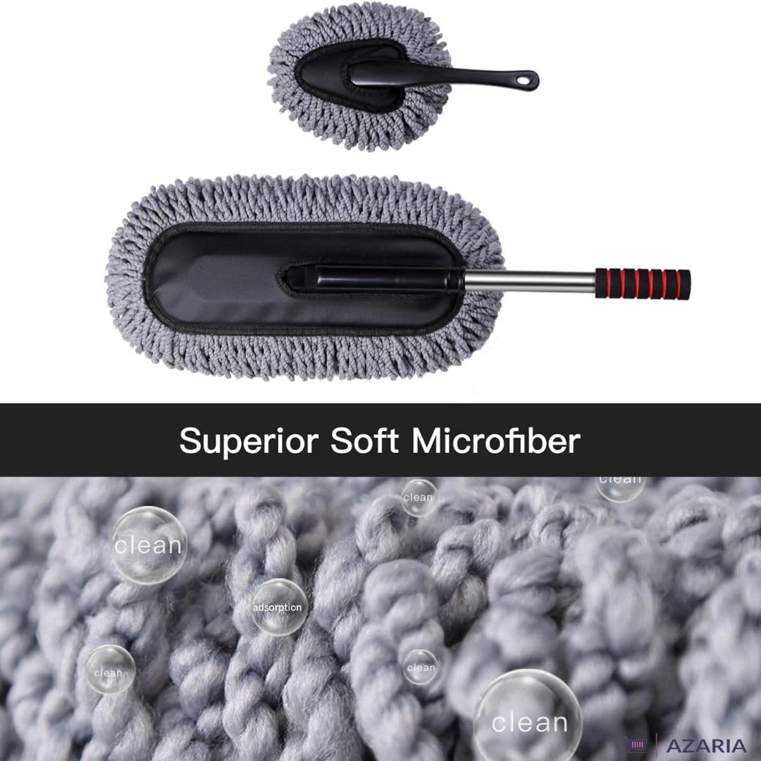 Jopasu Car Duster Brush and 380 GSM Microfibre Cloth Combo Pack for Car Care Cleaning & Dusting. Removes Dry Dust Without Scratching The Surface.