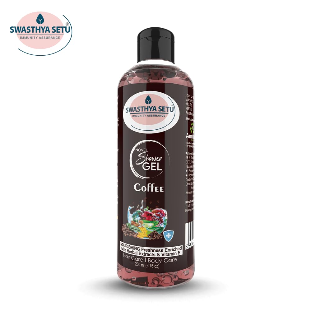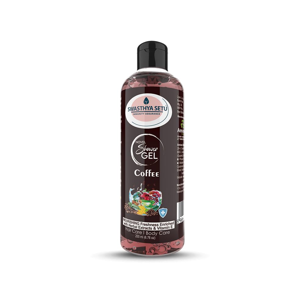Transform your daily routine into a moment of pure indulgence with Swasthya Setu Shower Gel – Coffee & Herbal Extracts. Infused with Vitamin E, Aloe Vera, and Coffee Extract, this shower gel not only cleanses but also nourishes and hydrates the skin, leaving it feeling soft, smooth, and revitalized. The invigorating coffee scent provides a natural mood-lifting effect, while the Tulsi Extract protects your skin from harmful germs, bacteria, and viruses. Ideal for all skin types, this gentle yet effective formula wraps your skin in a luxurious lather that deeply moisturizes and refreshes.