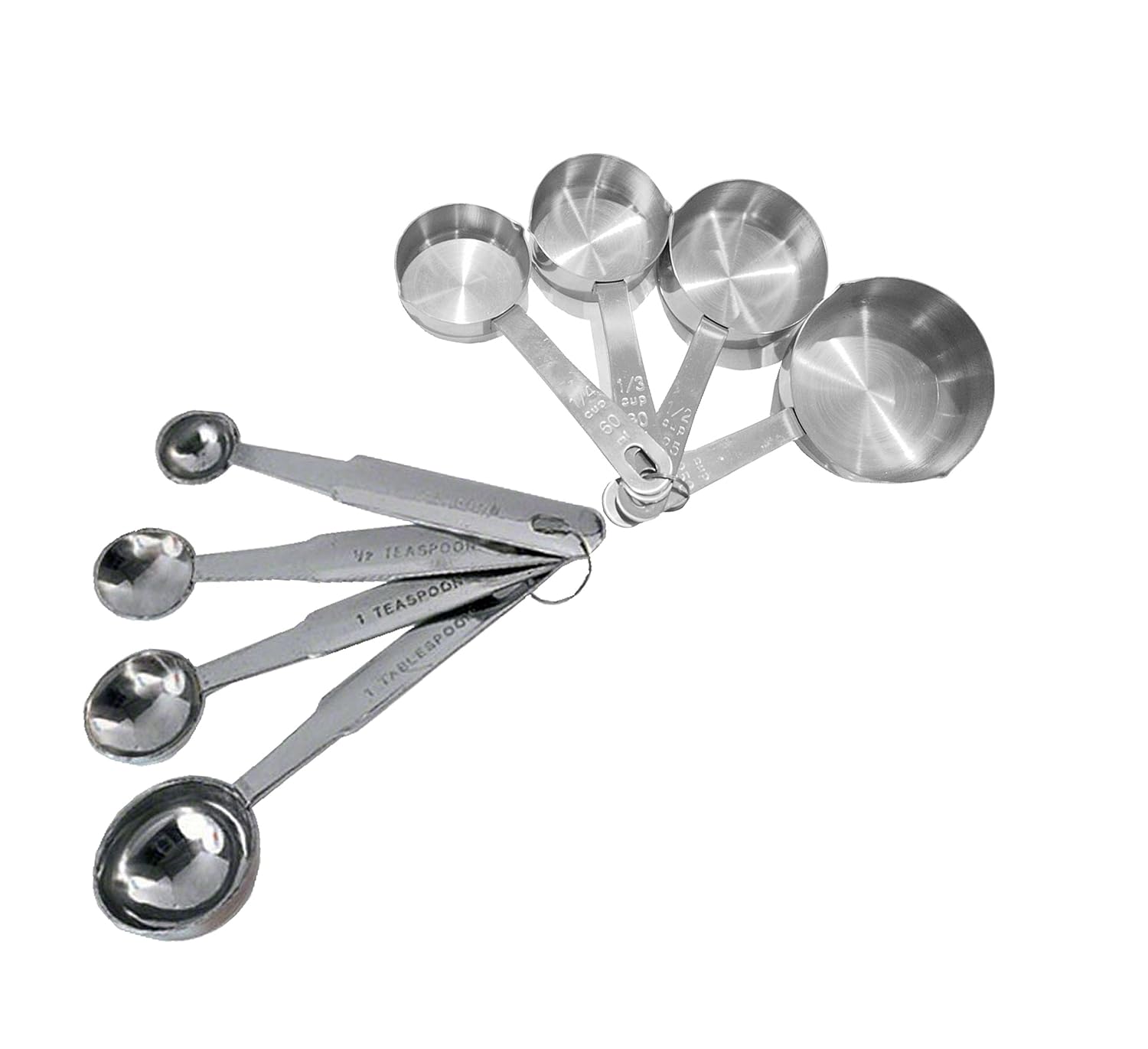 COMPLETE 4 PCS CUPSET of supreme quality and sturdy stainless steel measuring cups, including 60ML (1/4Cup), 80ML (1/3Cup), 125ML (1/2Cup) and 250ML (1Cup).