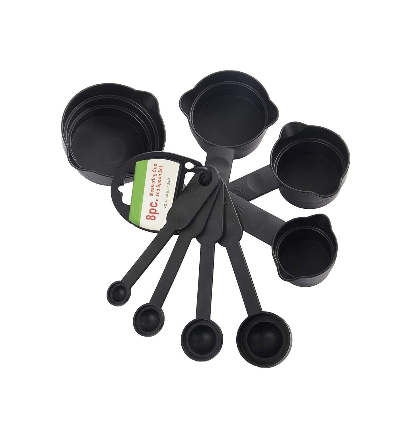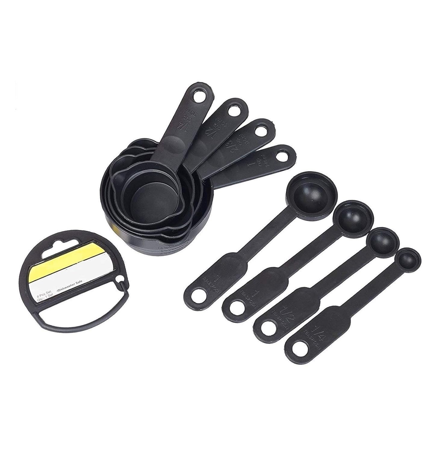 The handle is marked with a scale value, with a clear measurement tag in the handle for you to use on cooking and baking, making your food delicious.This measurement makes your cooking life easier, not more difficult, and brings more fun to your cooking.Holes and rings hold the measuring Cups and Spoons Set and spoon in place with the connecting ring for easy hanging and storage.