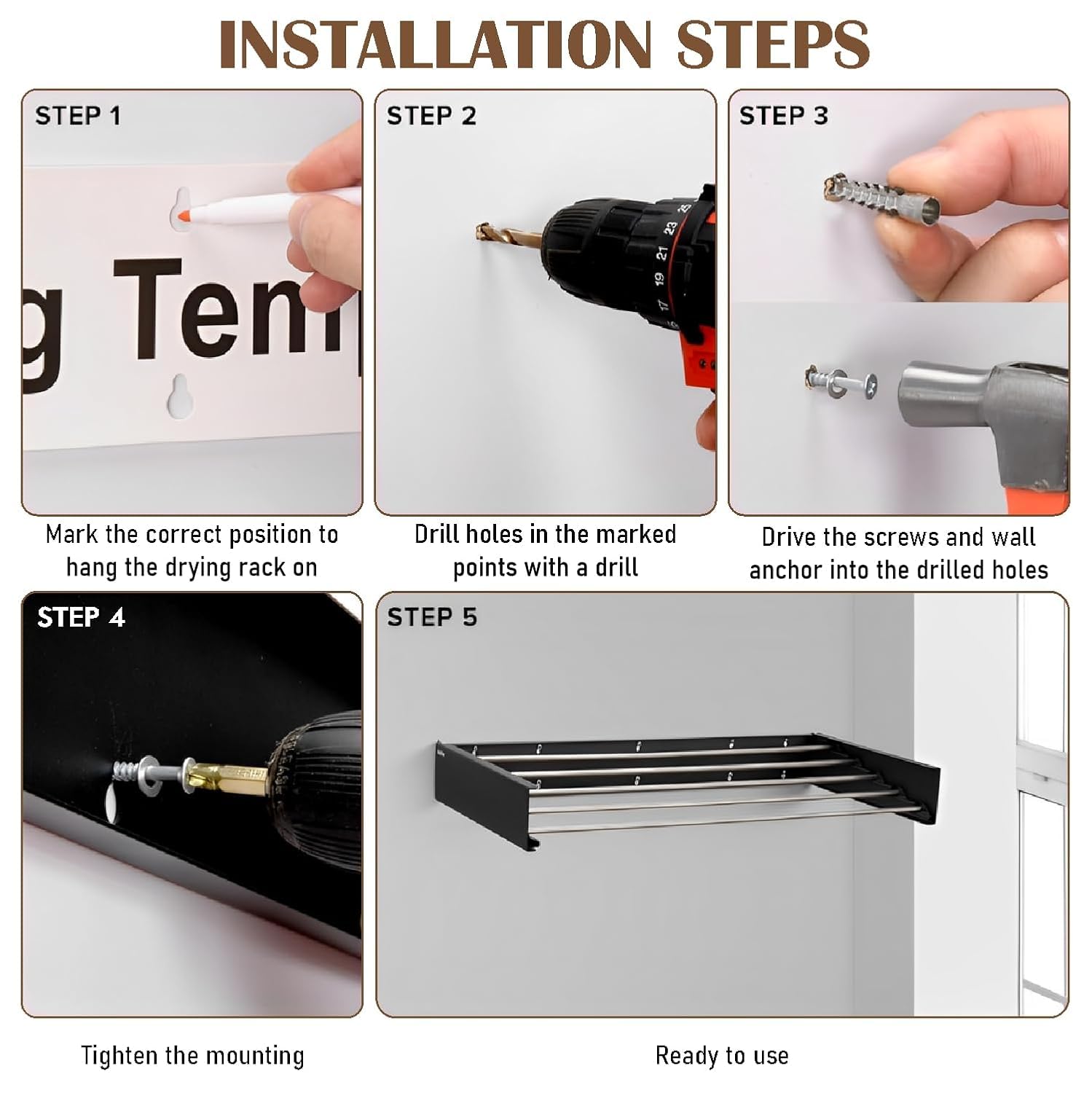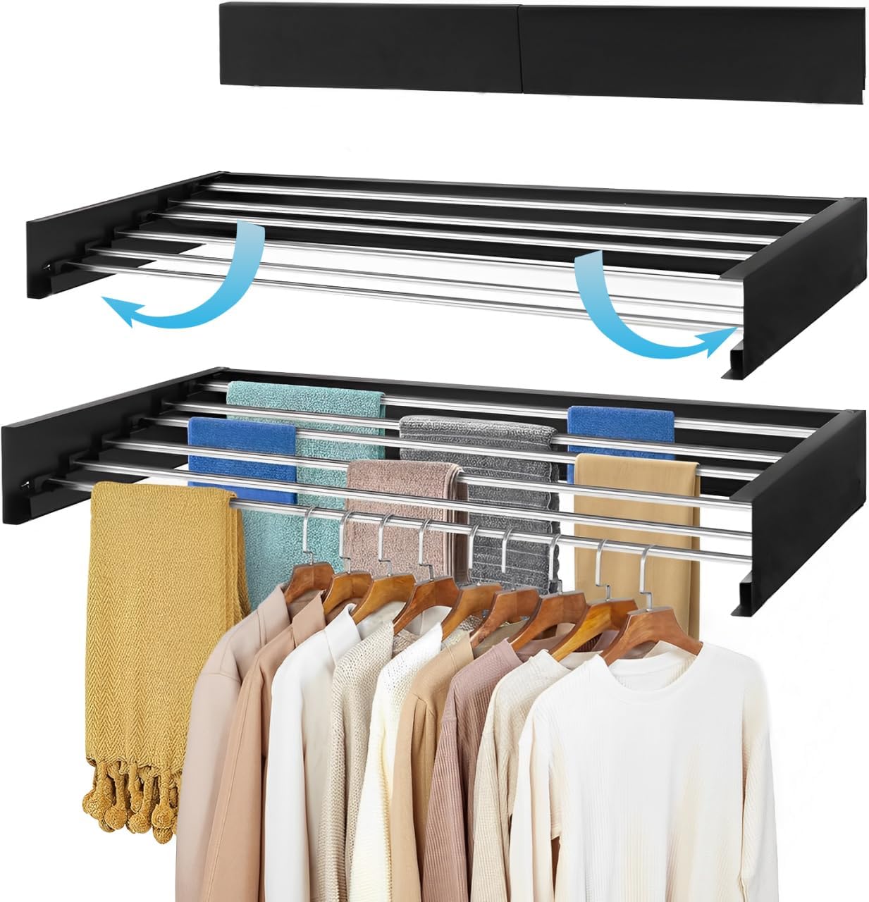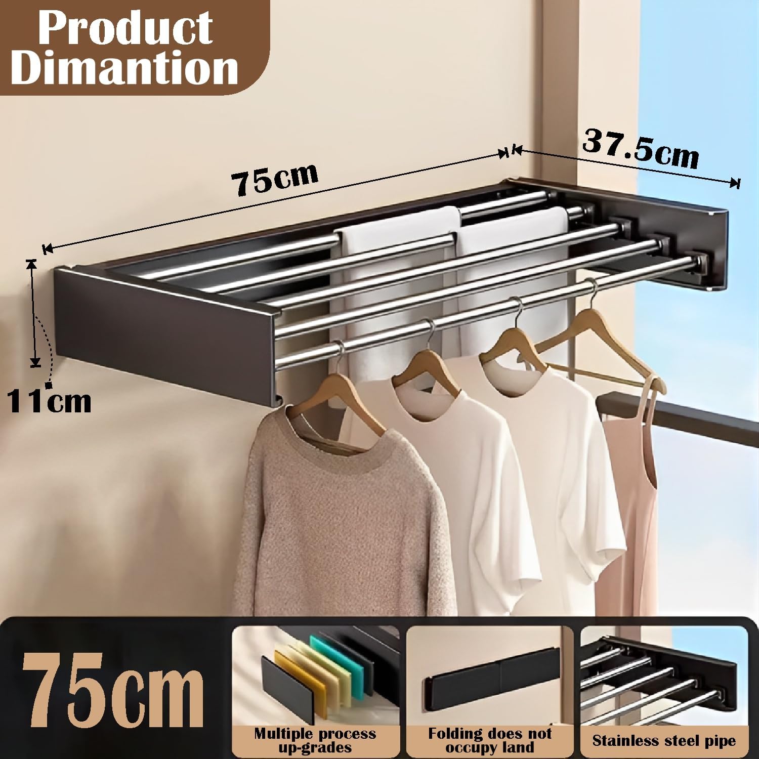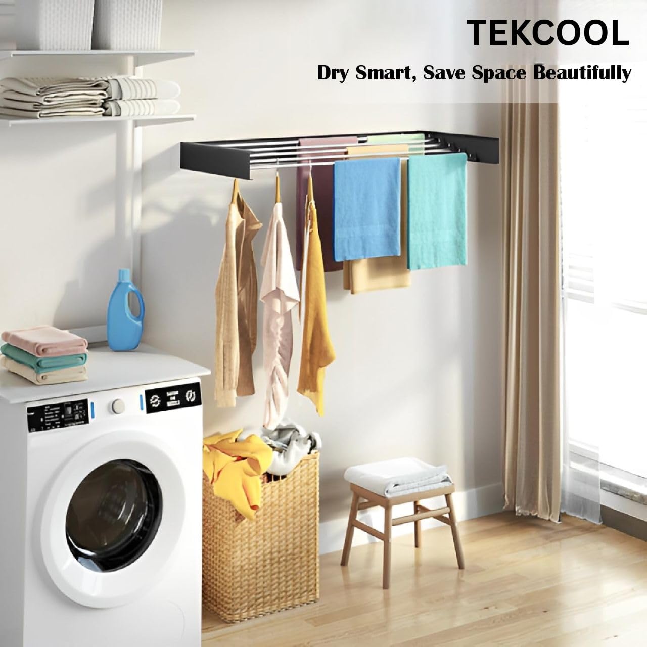 Home Home TEKCOOL Foldable Wall Mount Clothes Hanger/Cloth Drying Stand for Balcony with 5 Rods/Collapsible Clothes Drying Rack for Laundry/Space Saver/Indoor/Outdoor(Black)