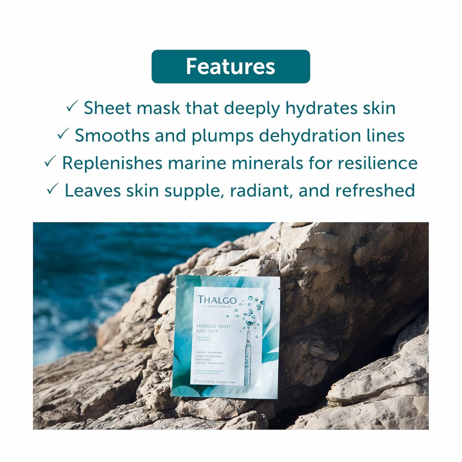 The Thalgo Thirst-Quenching Shot Mask is a quick and easy-to-use sheet mask, perfect for those seeking an intense hydration boost on the go.