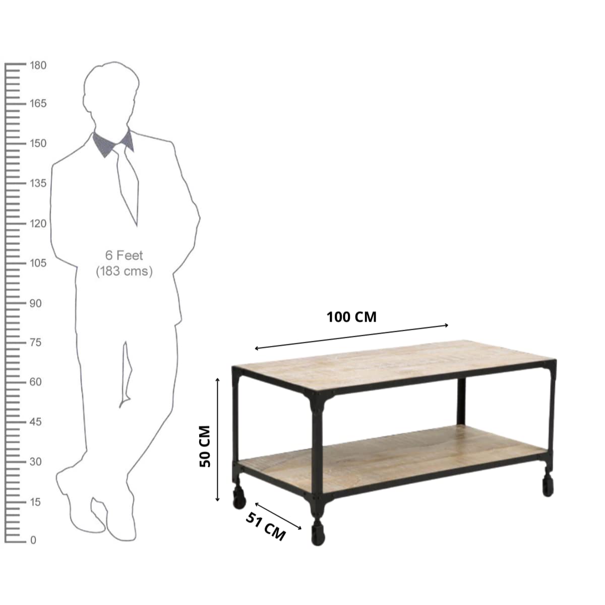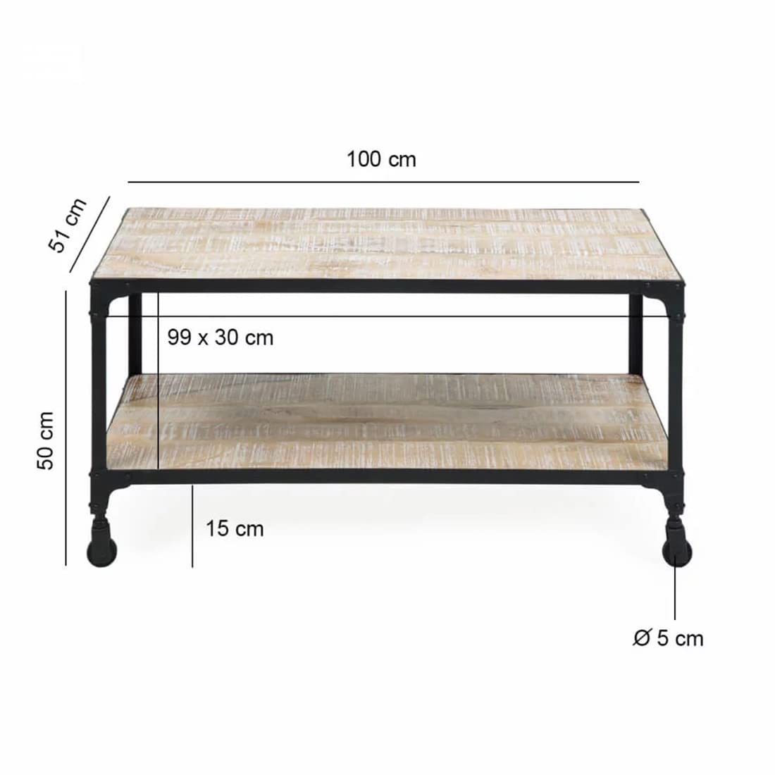 Material Used: Iron + Mango Wood; Colour: Whitewash; Size(cms): 100(Width) x 51(Depth) x 50(Height); Finish: Lacquered