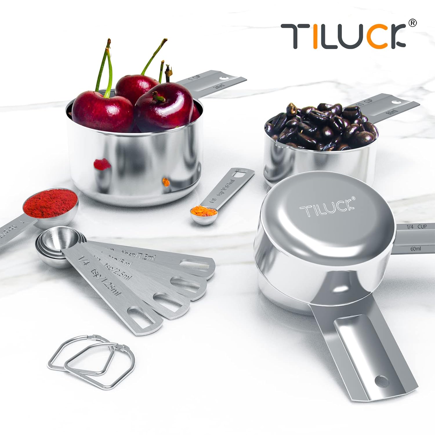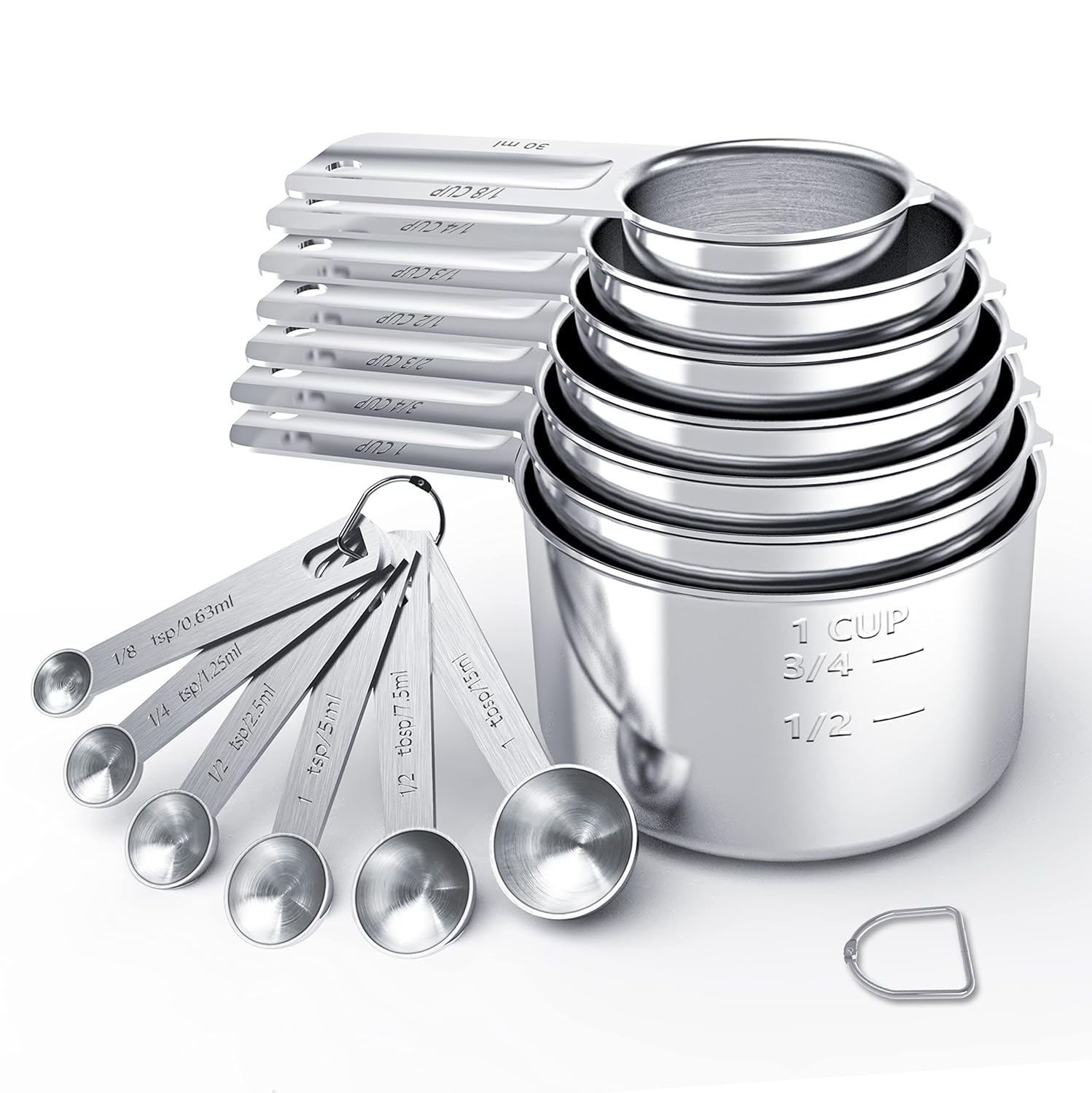 [Multiple Sizes]: Including 7 Measuring cups (1/8, 1/4, 1/3 , 1/2, 2/3, 3/4, 1 cup), 6 Measuring spoons (1/8, 1/4, 1/2 , 1 tsp, 1/2, 1 tbsp). Meet All Your Needs On Cooking And Baking