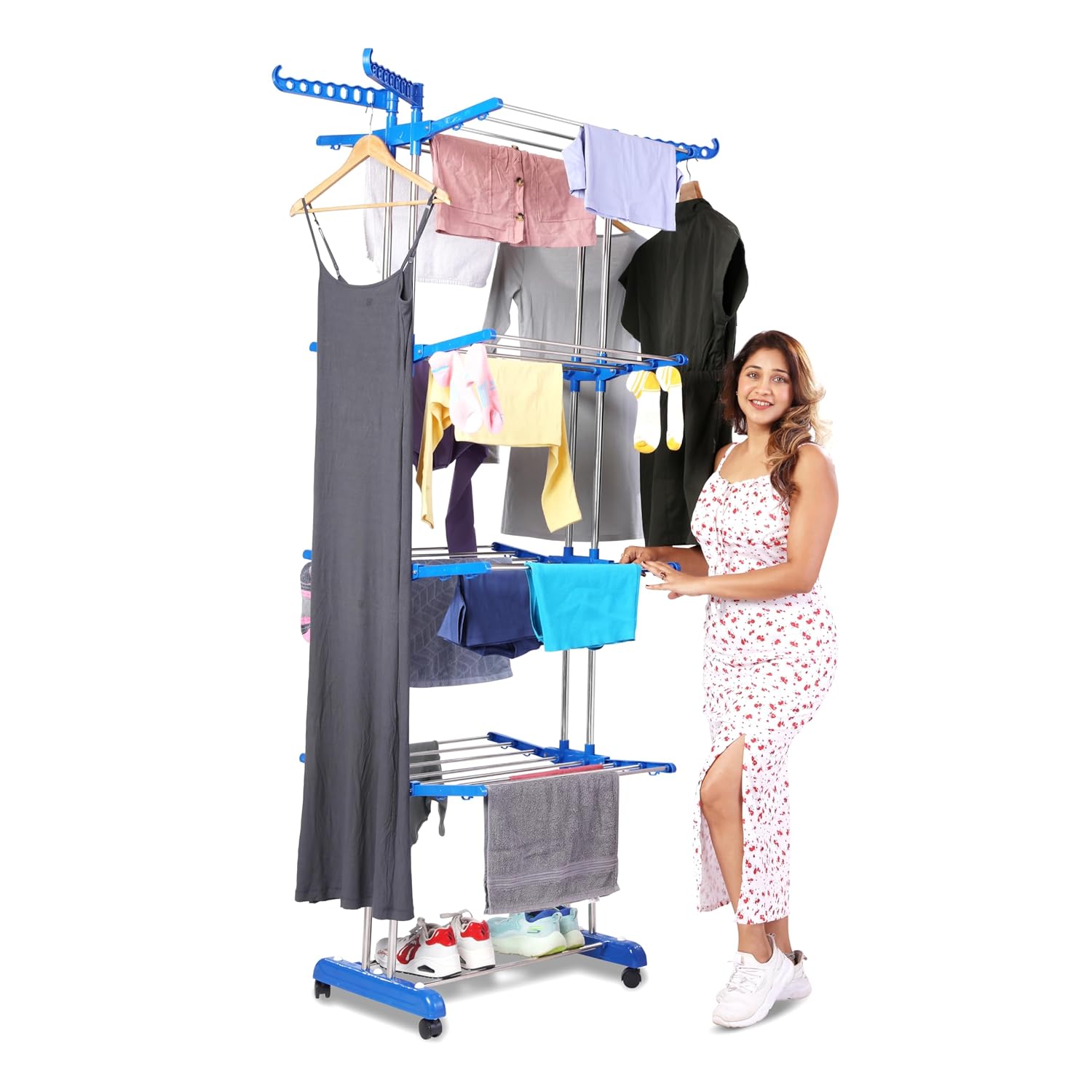 Mobility & Convenience: Equipped with smooth-rolling wheels and dedicated hanger slots for easy movement and efficient drying.