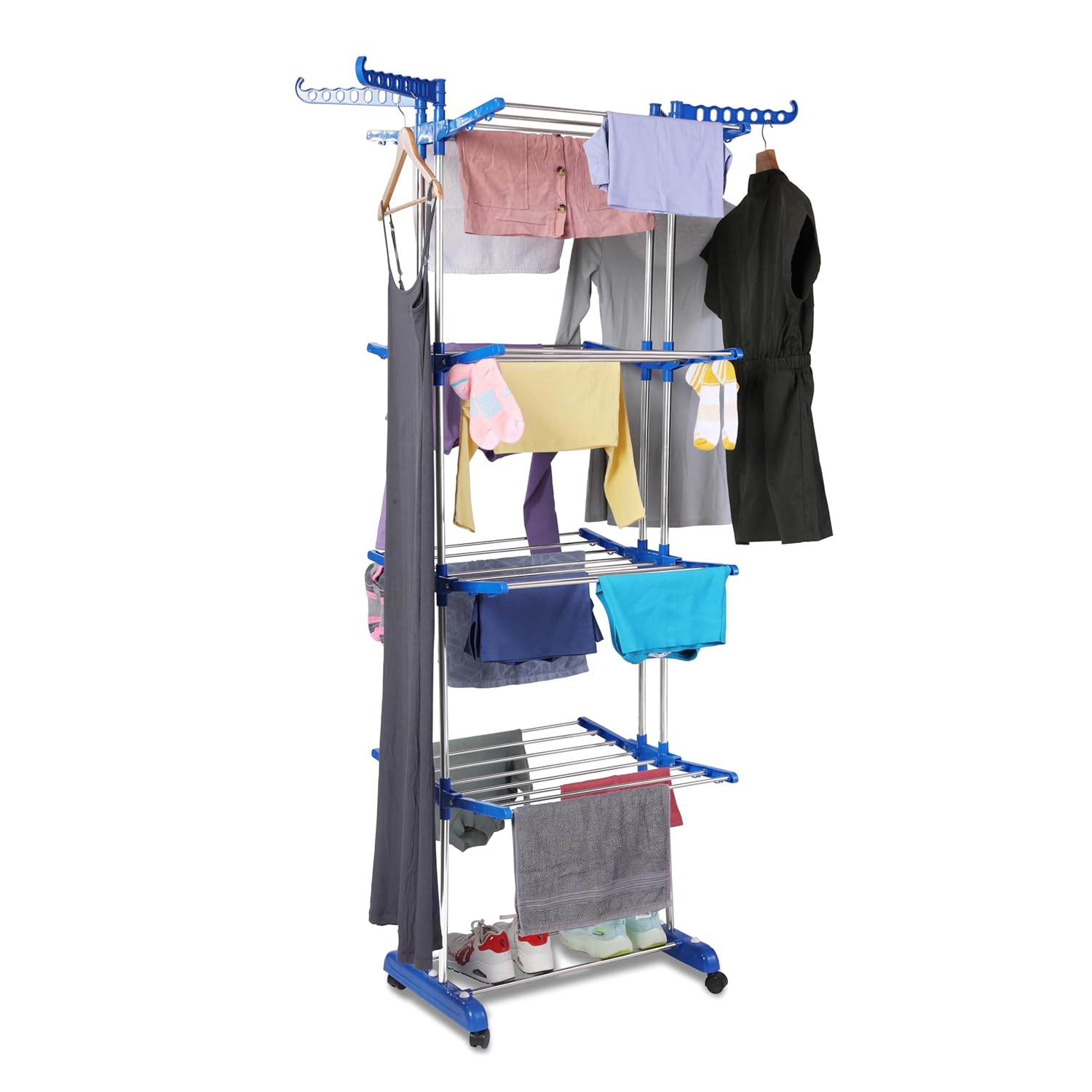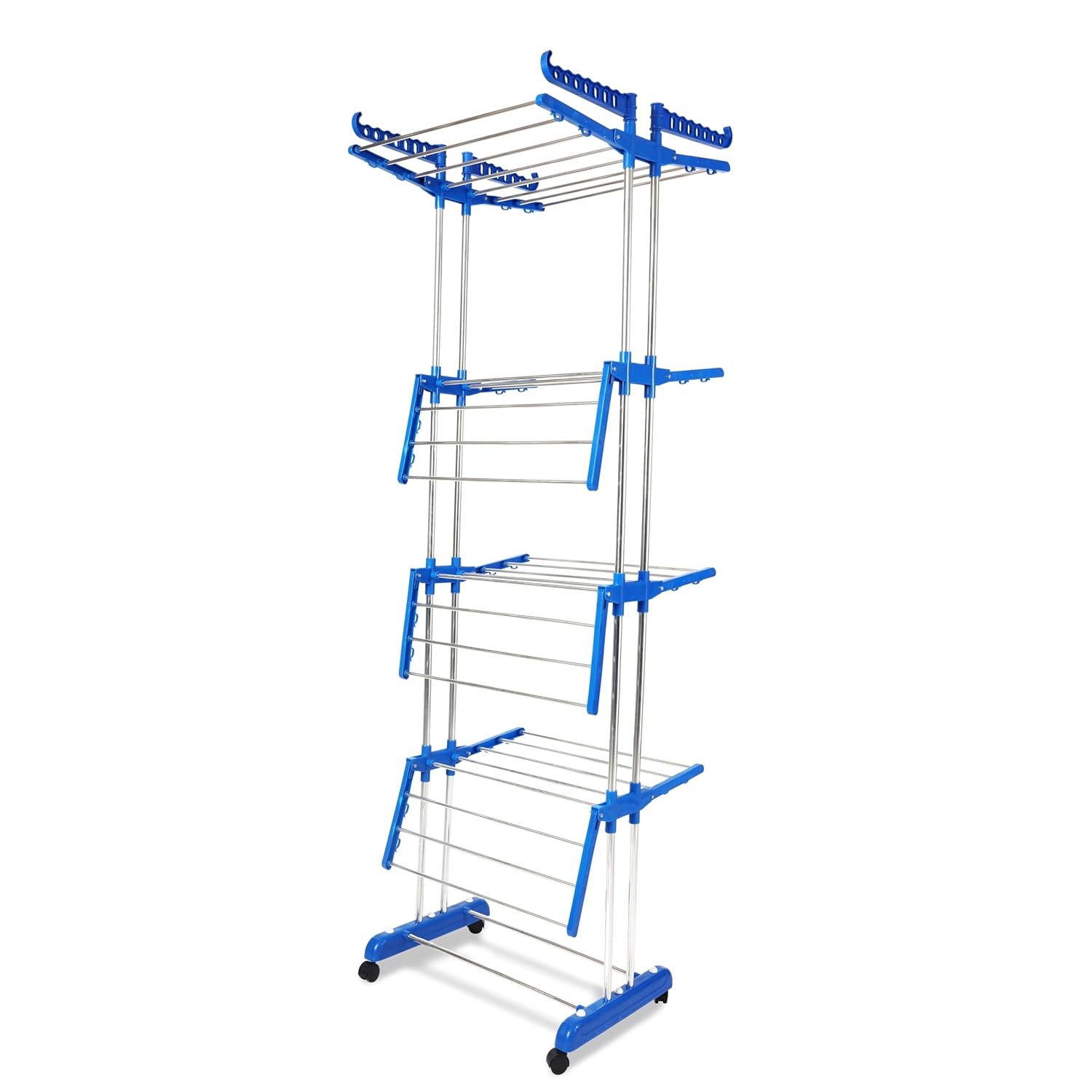 Home Home TNC Foldable Cloth Drying Stand Stainless Steel – Blue 2 Stand 4 Tier Clothes Dryer for Balcony, Indoor & Outdoor Use | with Wheels & Hanger Slots | (TNC-B24T-1)