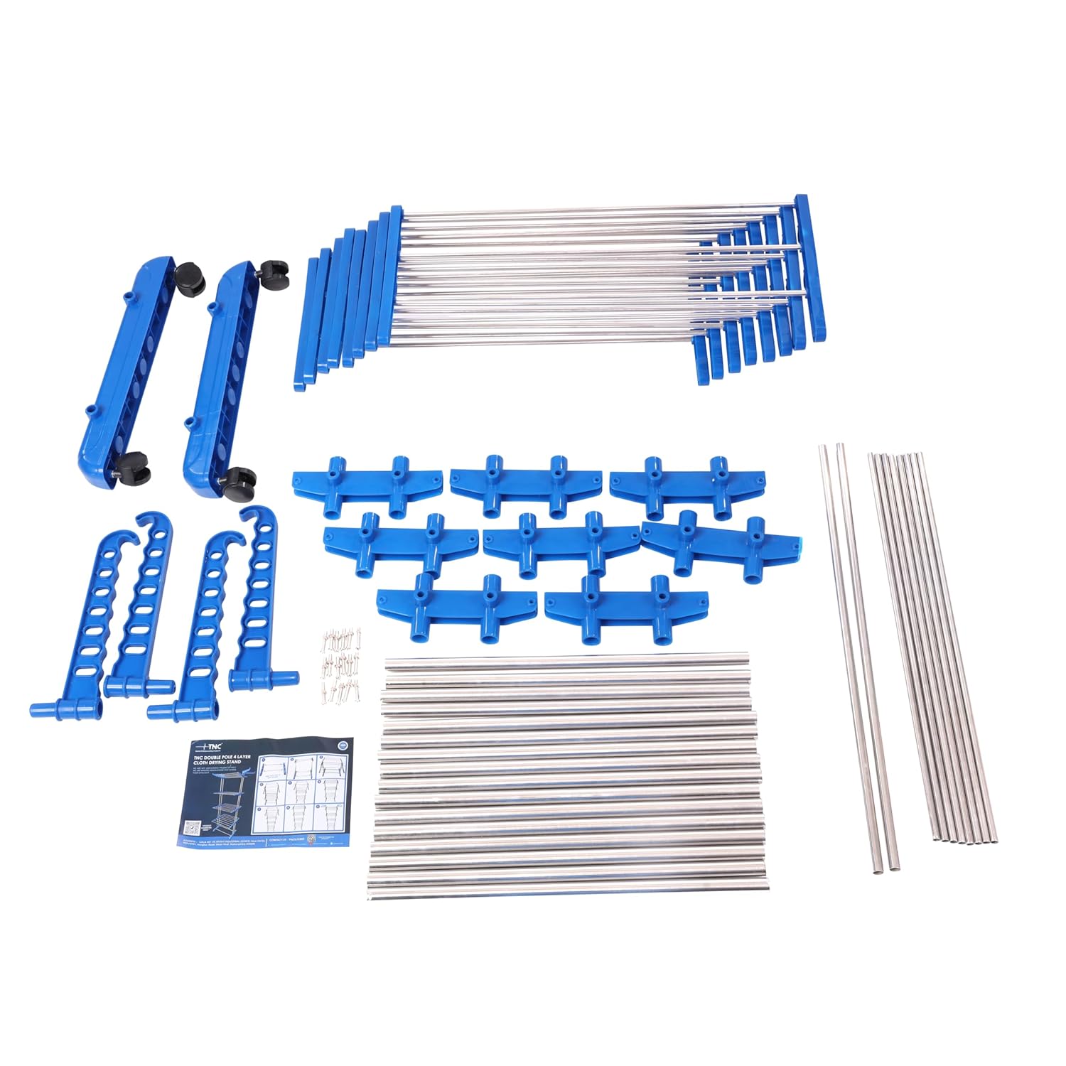 TNC Foldable Cloth Drying Stand Stainless Steel – Blue 2 Stand 4 Tier Clothes Dryer for Balcony, Indoor & Outdoor Use | with Wheels & Hanger Slots | (TNC-B24T-1)