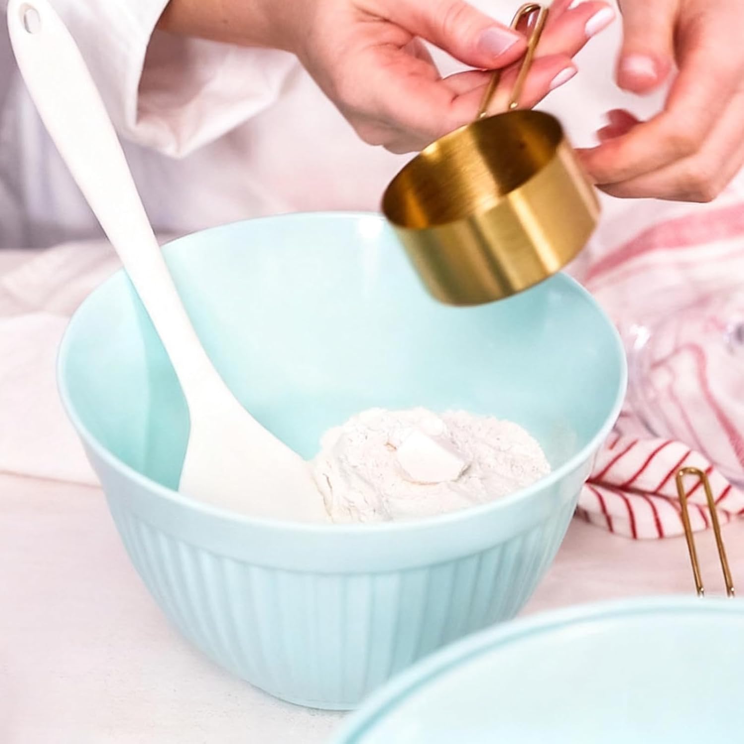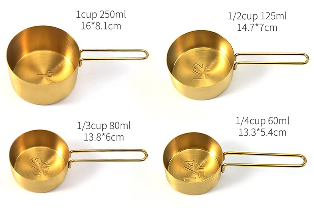 Package Include: Set of 9 gold measuring cups and spoons, include 4 measure cups and measure 5 spoons