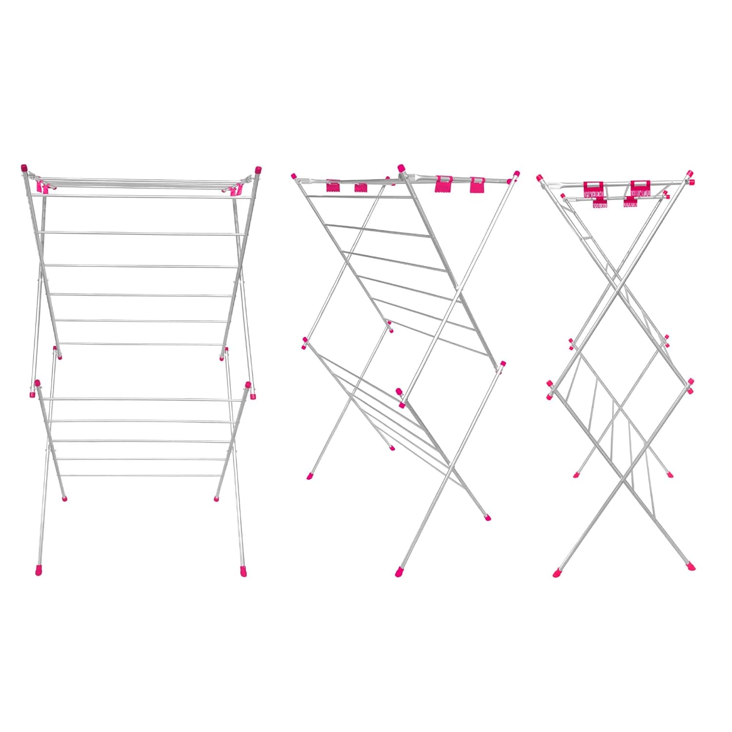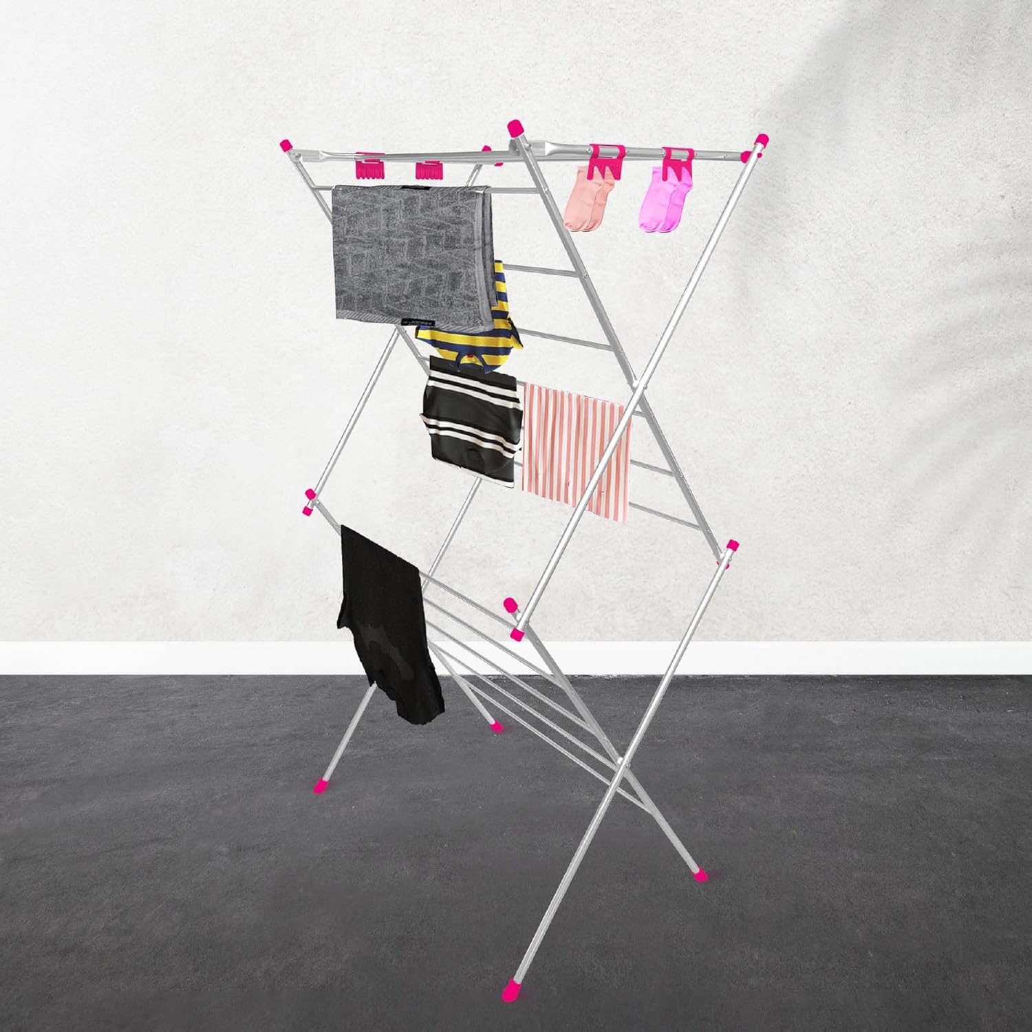 Say goodbye to cramped drying spaces with the 3-Tier Foldable Clothes Drying Rack, designed to bring efficiency and durability to your laundry routine. Featuring 16 rods across 3 tiers, it offers an impressive 43 feet of drying space, allowing you to dry multiple garments simultaneously with enough room between each item for optimal air circulation. Crafted from a combination of rust-resistant stainless steel and durable mild steel, this rack is treated with a 7-step weatherproof powder coating that enhances corrosion resistance and extends product life. Whether you’re drying clothes indoors during rainy days or placing the rack on your balcony in the sun, it remains sturdy and weather-tough. Thanks to its fold-flat design, the drying rack stores easily in closets or against walls, making it ideal for homes with limited space. Despite its lightweight build, it has a high weight-bearing capacity, allowing you to hang towels, jeans, or multiple wet garments with confidence. The criss-cross frame design supports better airflow while ensuring excellent balance and ventilation. Additional features like anti-slip leg boots offer extra grip on smooth surfaces, keeping the rack stable while in use. Best of all, it arrives fully assembled — just unfold and start drying! Whether you’re a minimalist looking for practicality or someone with heavy laundry needs, the Ziggler Clothes Drying Rack is the perfect combination of versatility, strength, and space-saving convenience.