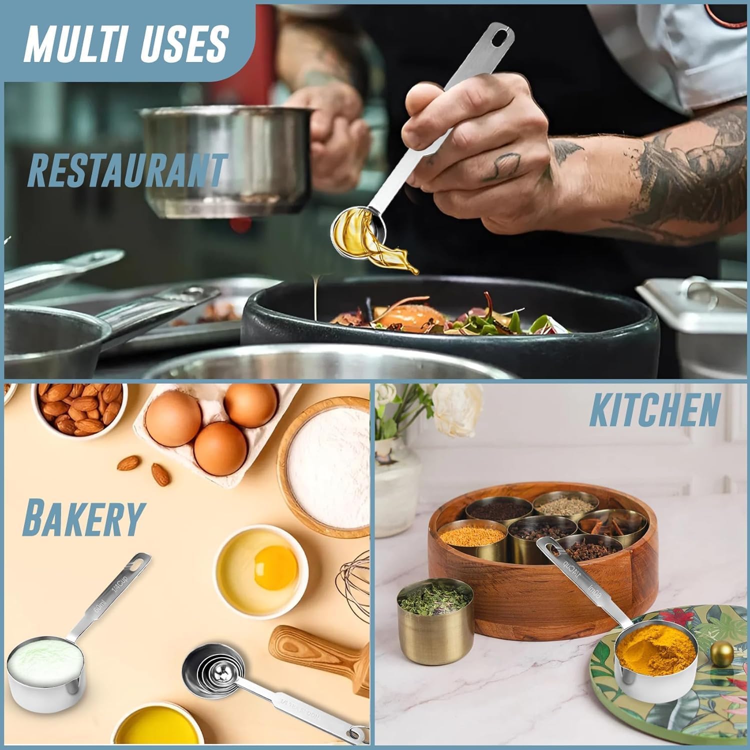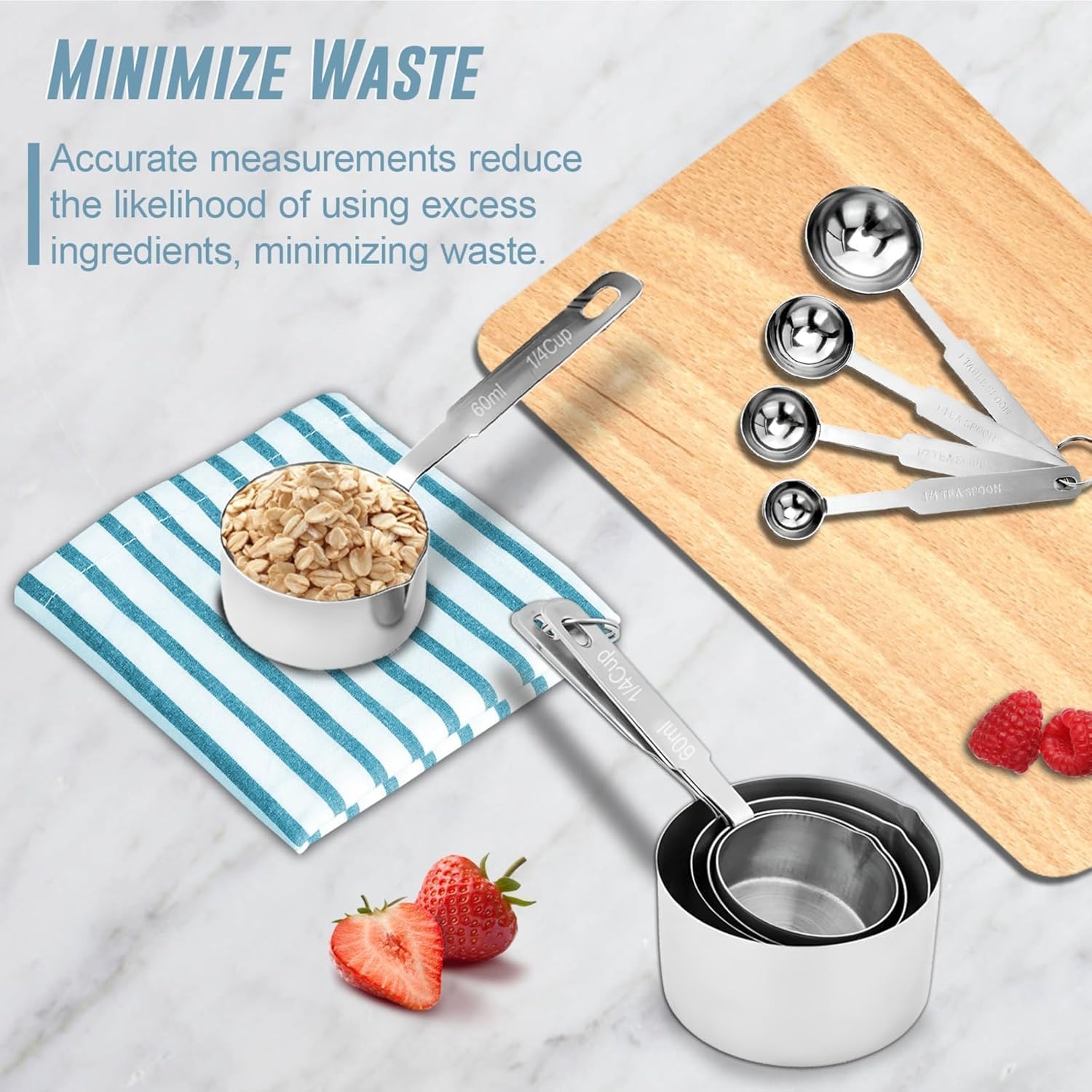 COMPLETE SET: 8-piece measuring set includes 4 measuring cups and 4 measuring spoons, perfect for precise kitchen measurements