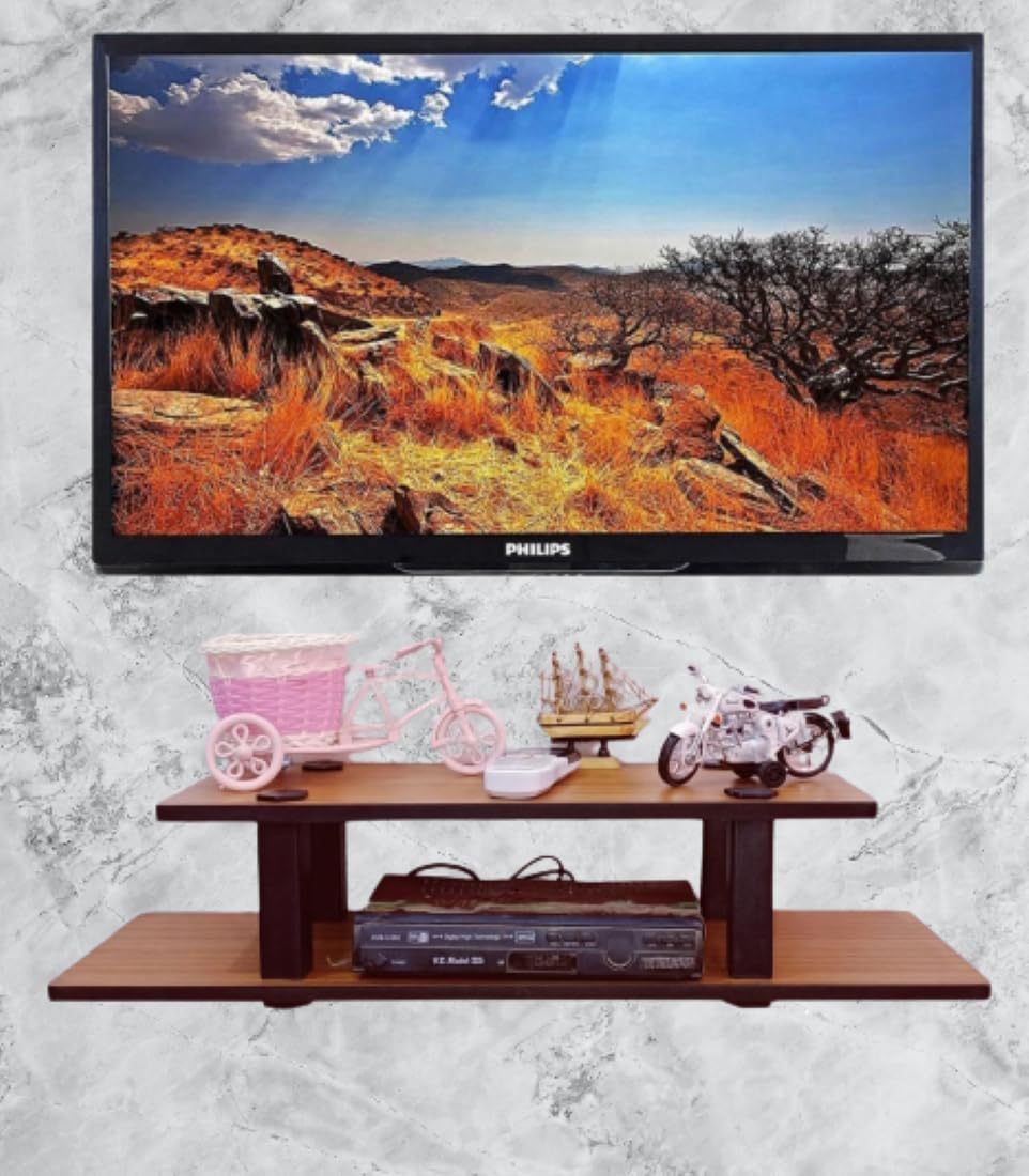 This is a multifunctional wall-mounted TV shelf unit that can be used on any wall big TV sizes also.