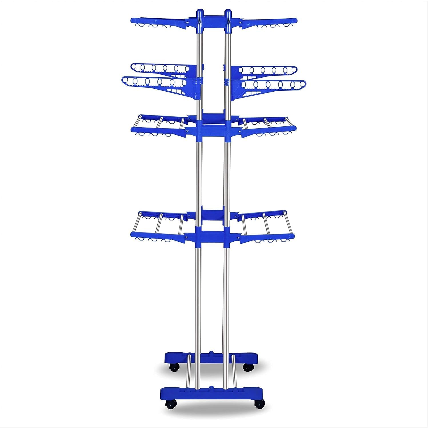 JD FRESH Stainless Steel 4 Tier Big Clothes Drying Stand/Foldable Laundry Rack/Cloth Dryer/Hanger for Clothing/Outdoor/Indoor/Balcony Space Saver for Home (Blue)