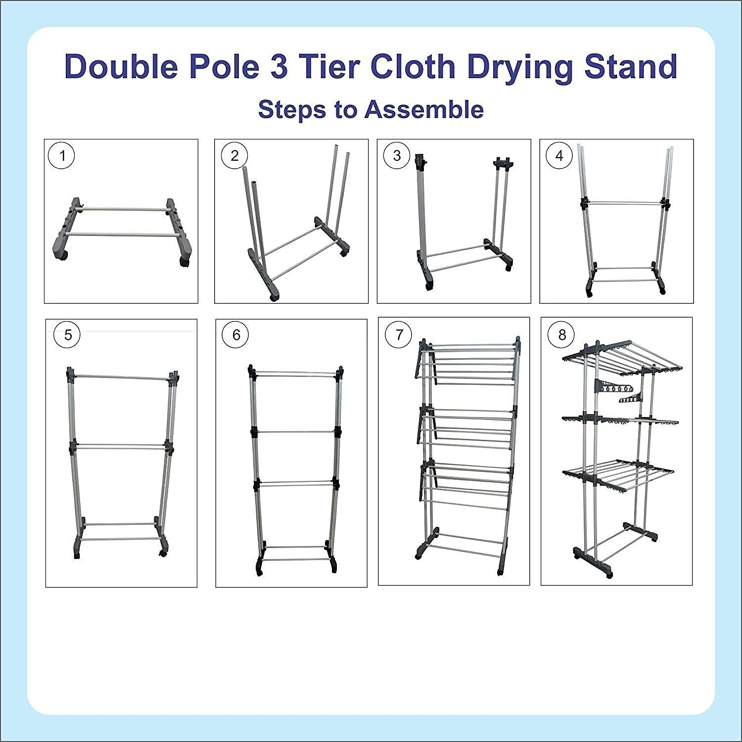 Home Home Twin sty Folding Double Supported 3 Layer Cloth Drying Stand Laundry Dryer Hanger with Breaking Wheels for Balcony Indoor and Outdoor Home, Stee