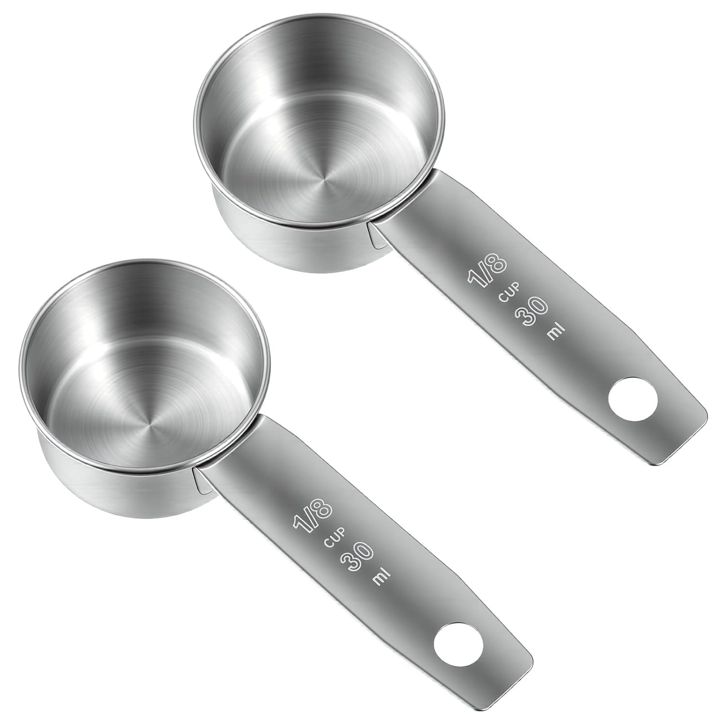 Home Accessories Tyqour 2 PCS 1/8 Cup (30ml, 1oz) Measuring Cup 1/8 Teaspoon Measuring Spoon Stainless Steel Coffee Measuring Scoop Durable Metal Measuring Cups
