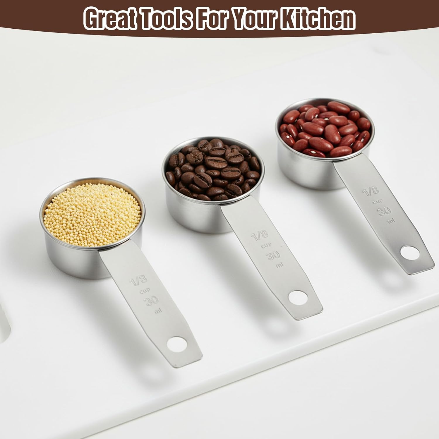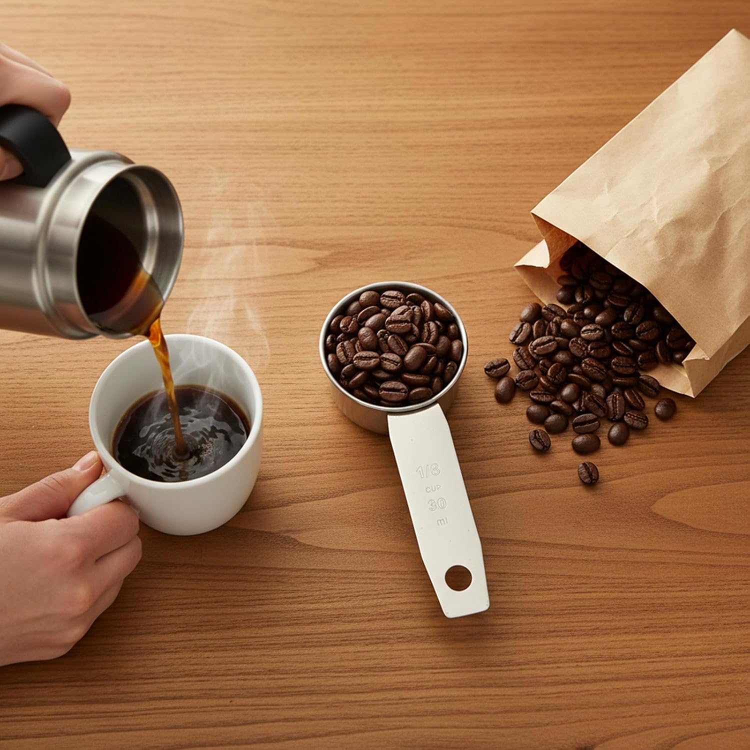 【Multi-Functional Use】Beyond coffee, our 1/8 cup scoop serves as a versatile tool for measuring spices, protein powders, and pet food. These metal measuring cups are indispensable for any kitchen setup, enhancing your culinary experience