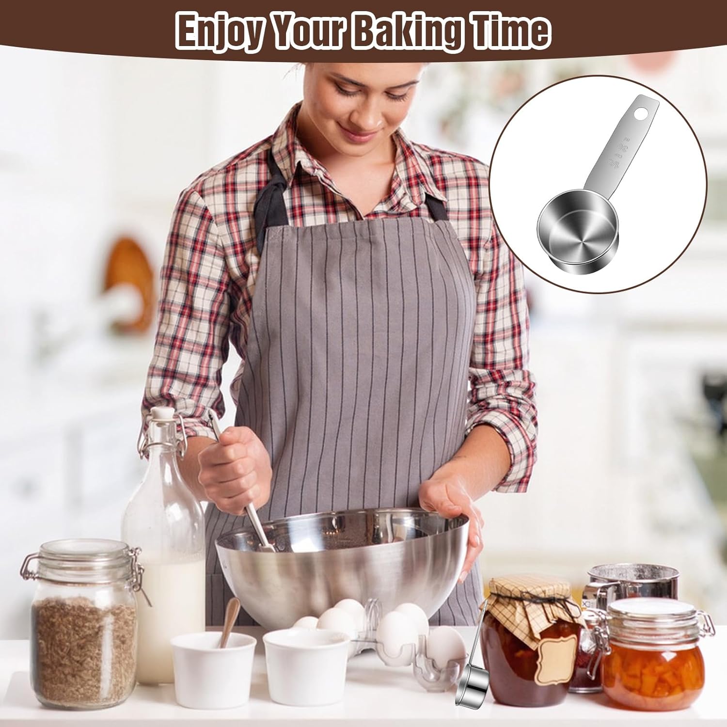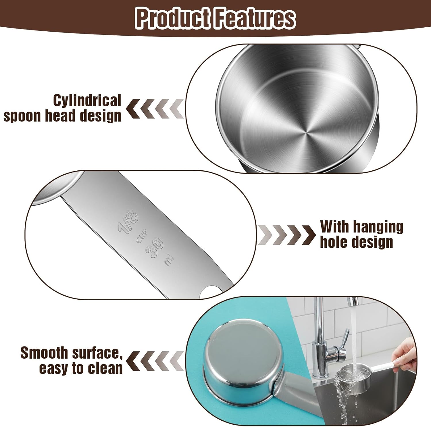 【Durable Construction】Crafted from high-quality stainless steel measuring spoons, these metal measuring cups resist rust and corrosion, promising long-lasting use. The sturdy design ensures they won’t bend or break under pressure
