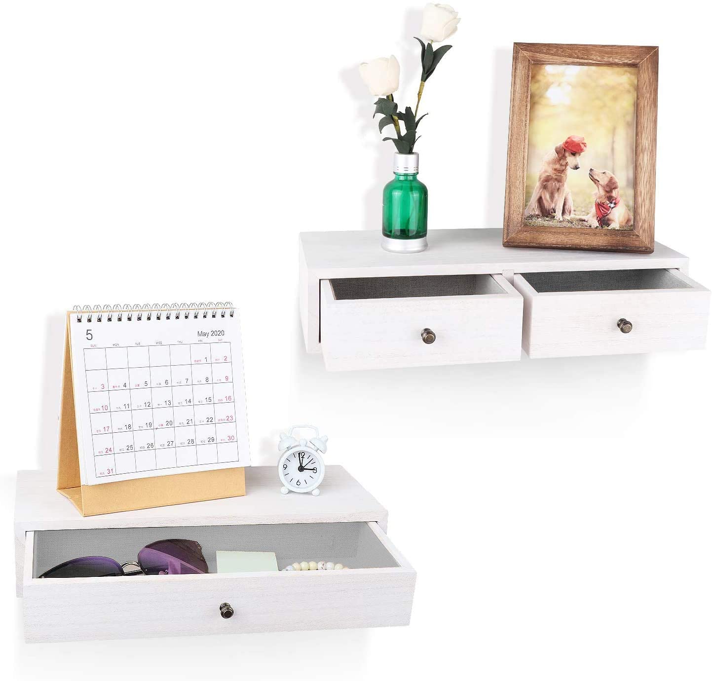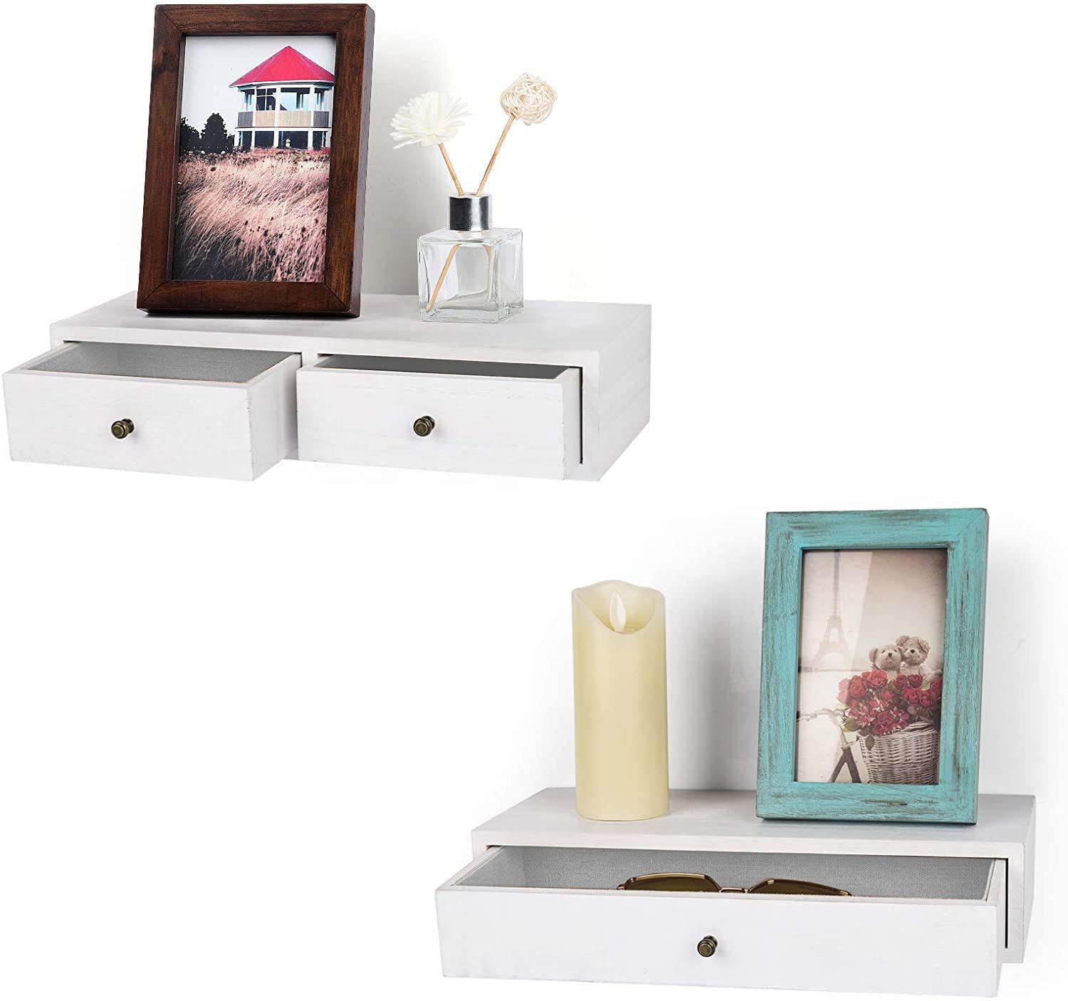 【Effective space utlilzation】2 drawer help you free-up home space for store keys, DVDs, phone notepads, pens, and other knick-knacks, perfect for utilizing your walls efficiently, free up more floor space.