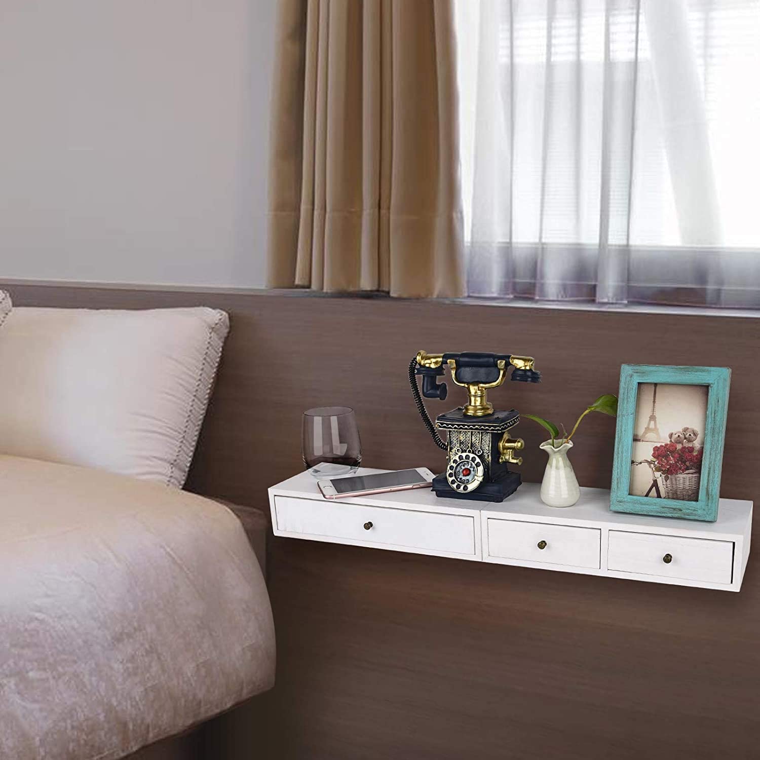 【Stylish and rustic style】This floating shelf features a hidden drawer adds a rustic, elegant touch to any room while adding functional storage space.