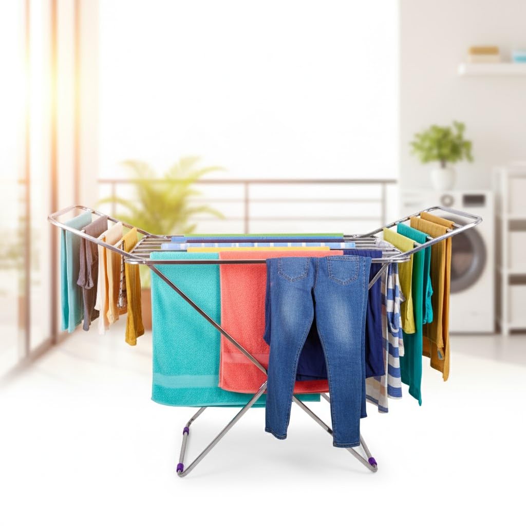 • Premium Stainless Steel Build: Crafted with 100% stainless steel, including screws and fasteners, this stand is rust-proof, corrosion-resistant, and designed for long-lasting durability. Its strong rods prevent sagging and ensure efficient drying even with heavy clothes.