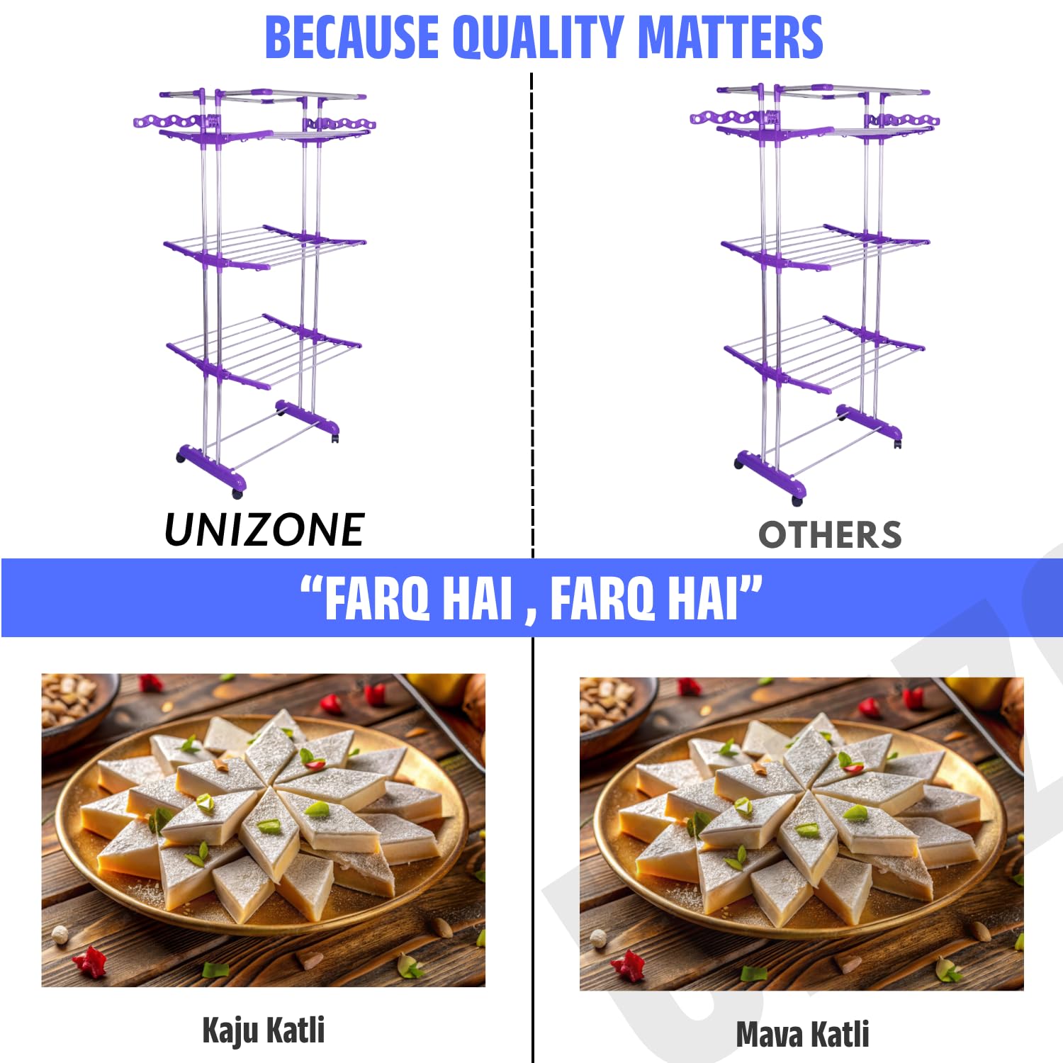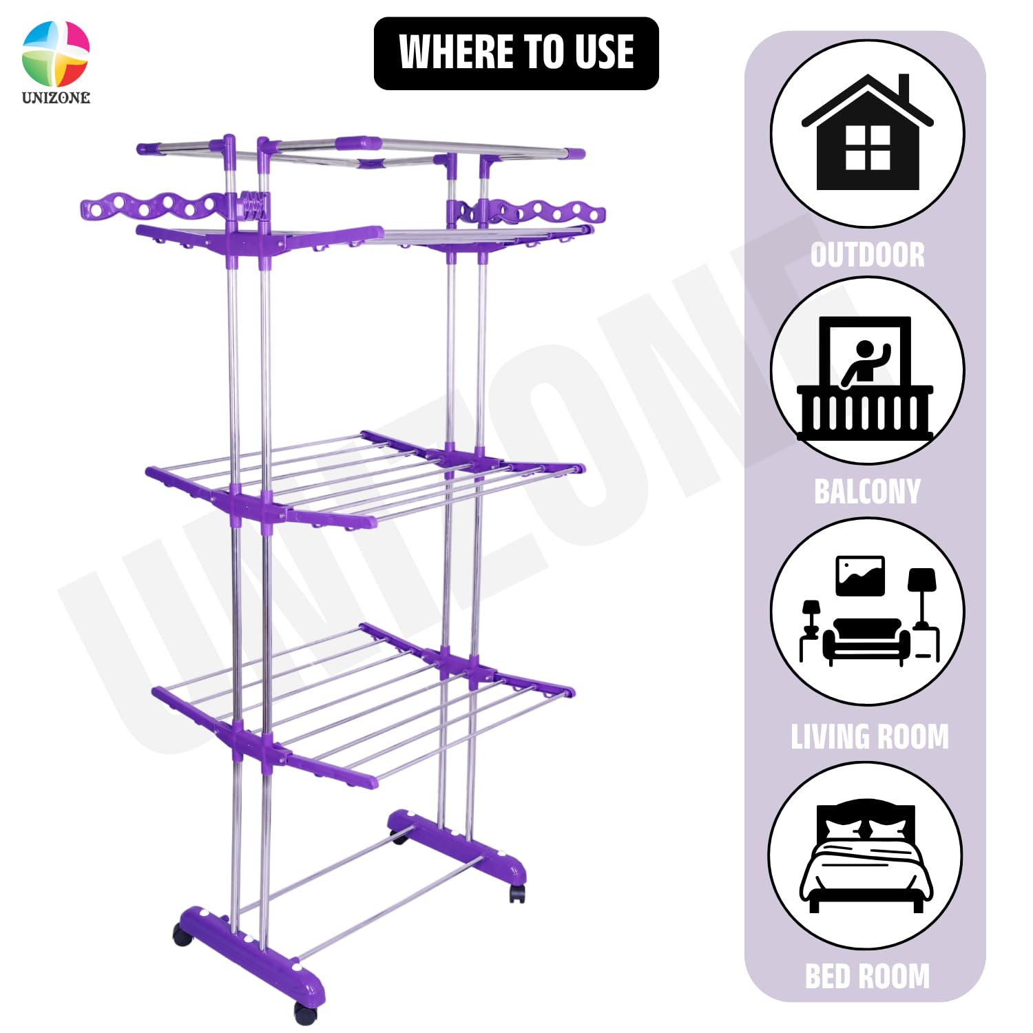 - Sturdy and Light Weight: Ideal for every home as this cloth dryer rack can hold huge load of clothes on multiple rods and best of breed for balcony use also.