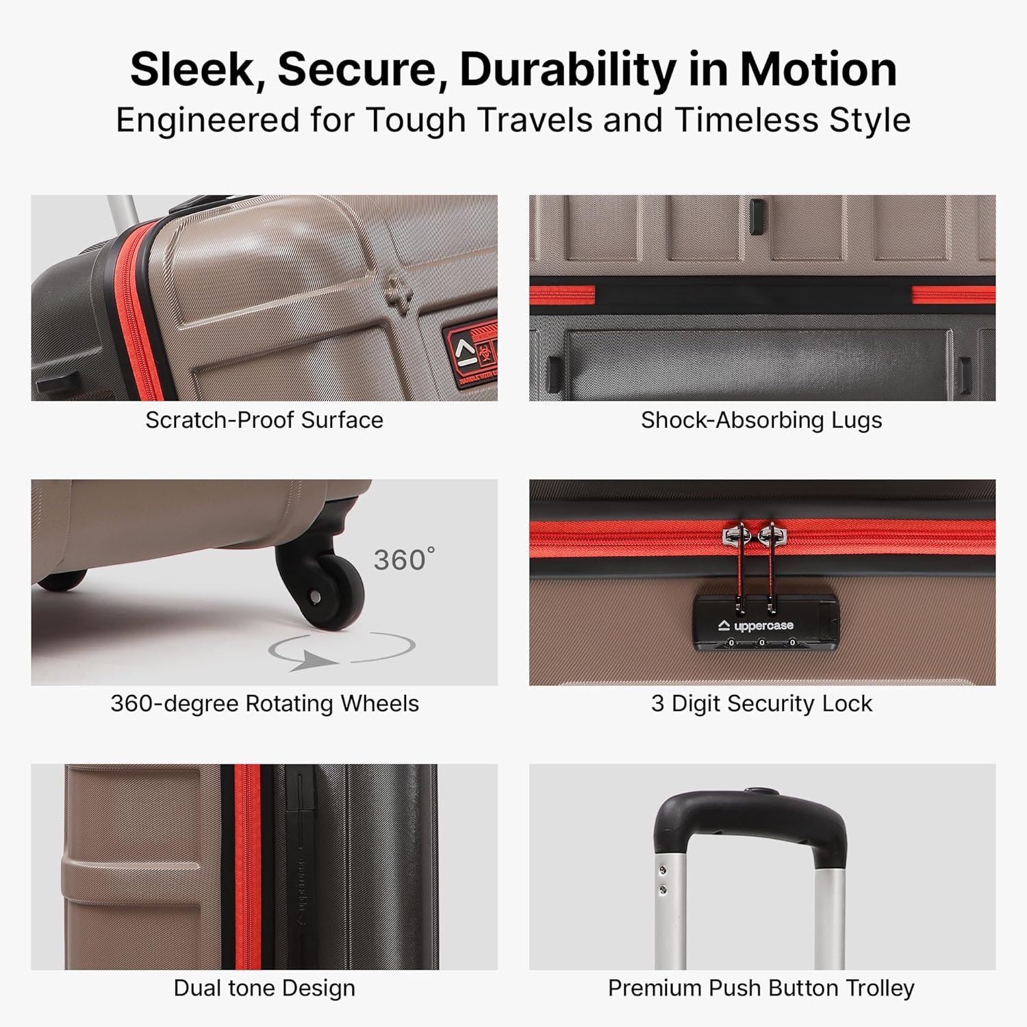 IN-BUILT COMBINATION LOCK- Safeguard your belongings with the uppercase Trolley Bags. To bolster security, each bag includes a built-in combination lock, ensuring your items arrive at your destination in the same pristine condition as when you packed them, providing peace of mind throughout your journey