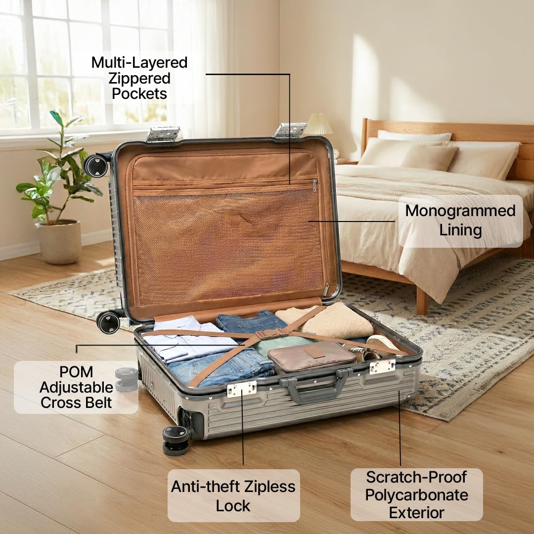 ANTI-THEFT FEATURE This trolley bag for travel has dual TSA locks and a strong aluminium frame, keeping your belongings safe from impact and unauthorised access for worry-free travel.