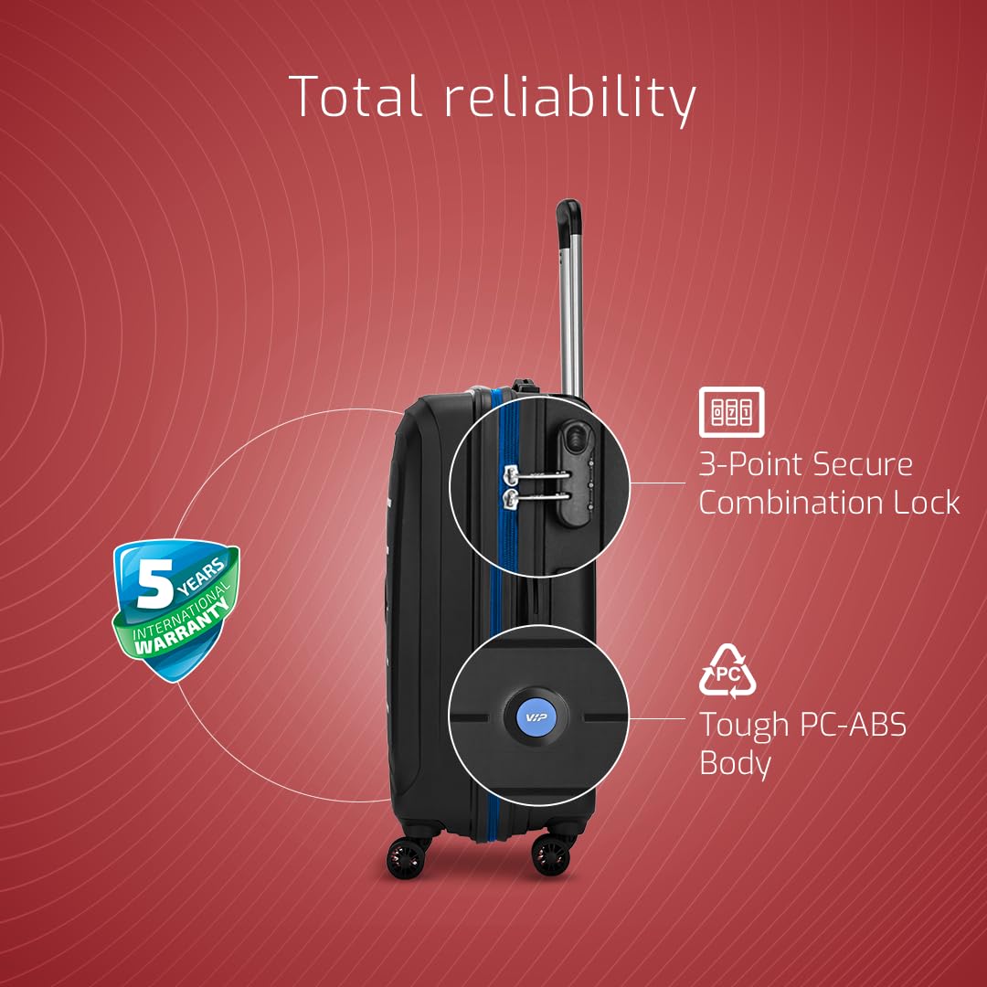 VIP Corsa Check-in 66 Cm (Medium) 8 Wheels Trolley Bags for Travel, Hard Case Lightweight Bag with Combination Lock, Tough Suitcase for Travel (Black)