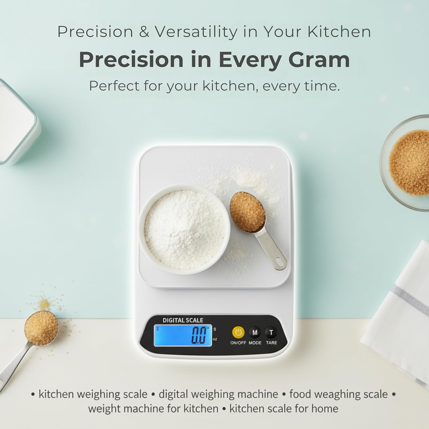 Versatile Food Weighing Scale – The weight machine for kitchen 10kg is perfect for measuring ingredients for your favorite recipes, making it ideal for cooking, baking, and portion control.