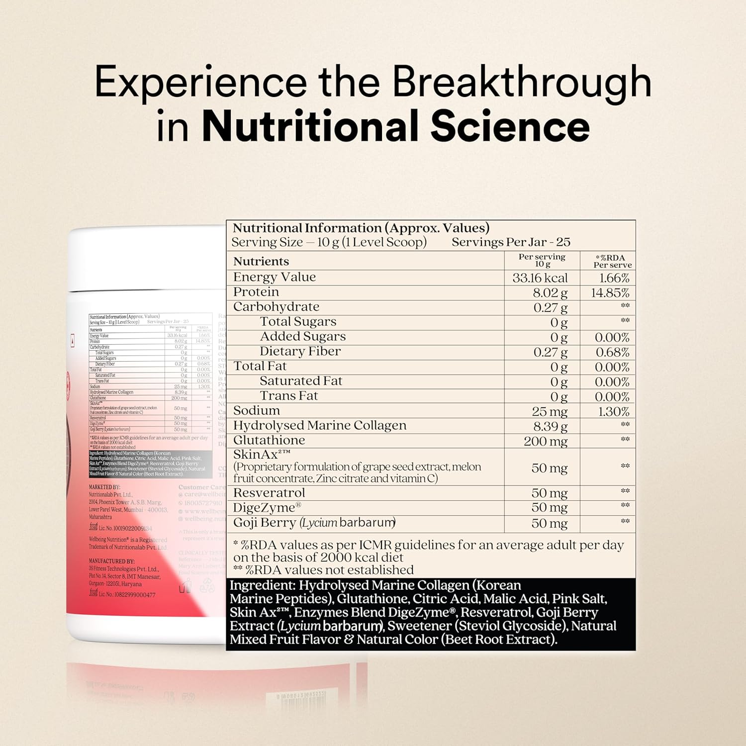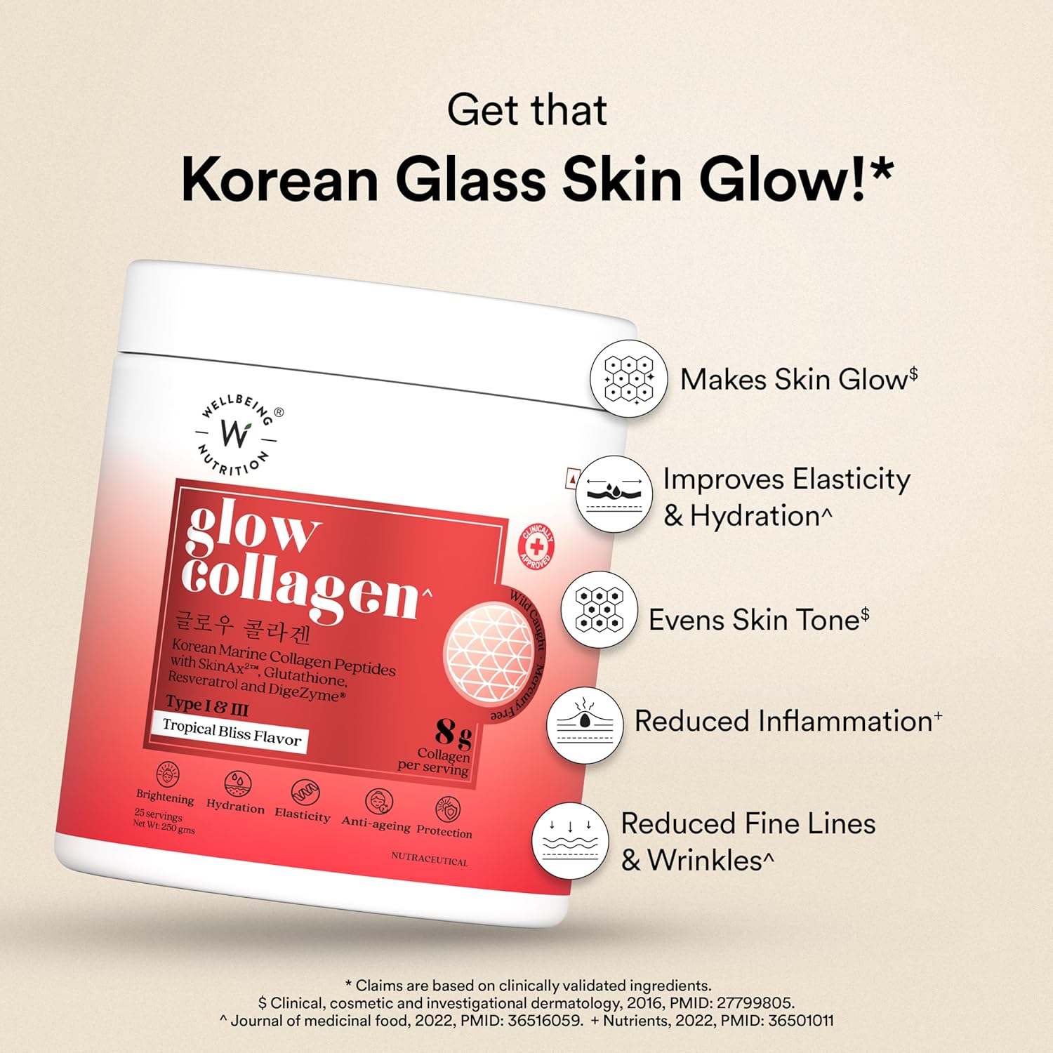Be the first to review “WELLBEING NUTRITION Glow Collagen with Glutathione|Collagen Supplements Marine Collagen Powder with SkinAx², Resveratrol, Bromelain & Goji Berry|250g – Tropical Bliss Flavor, 1 count, 25 servings” Cancel reply