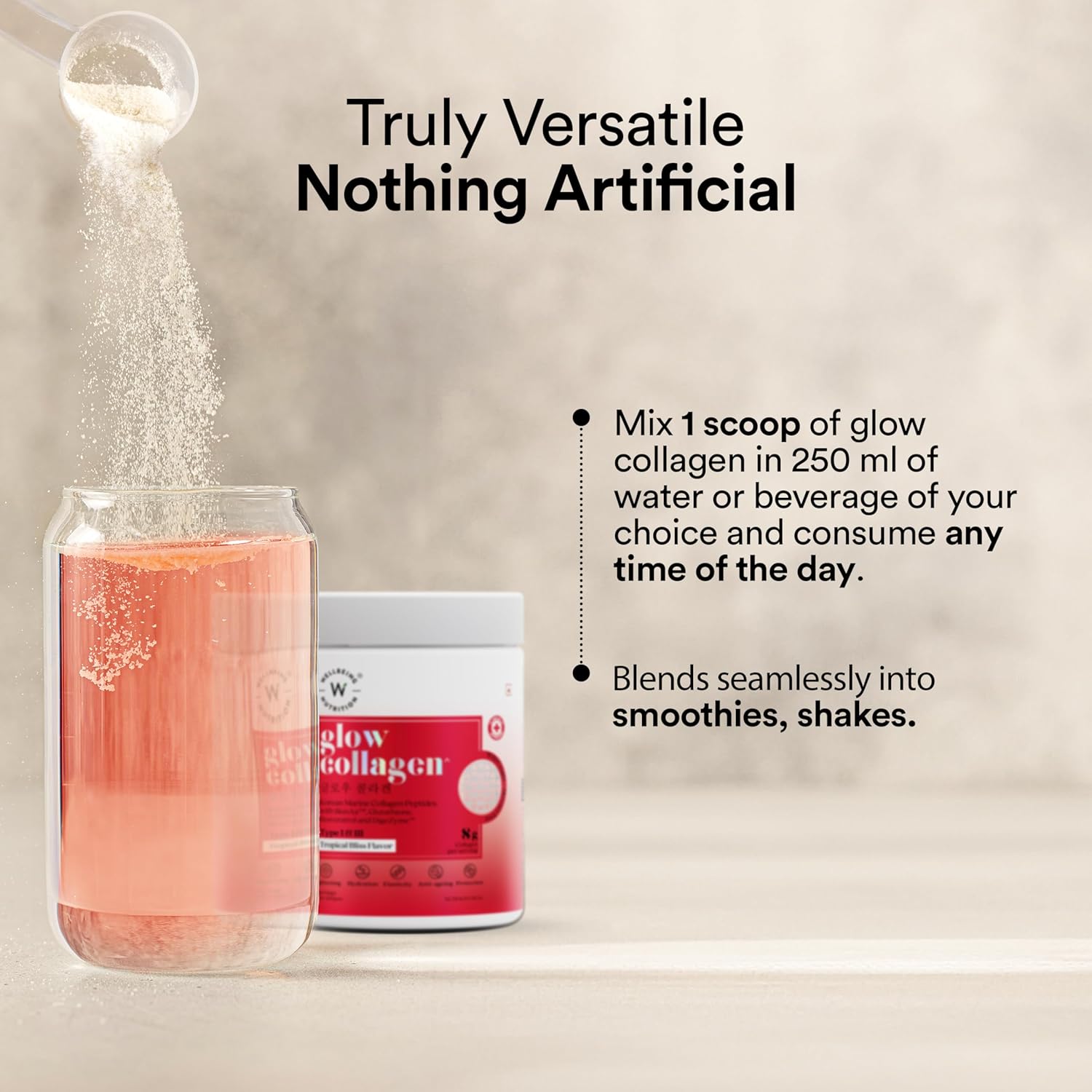 100% PURE MARINE COLLAGEN PEPTIDES FOR ENHANCED GLOW: With Glow Collagen (Pure Marine Collagen Peptides) you get the highest grade of Collagen available in the world – 8000 MG (per serving) Platinum Grade Wild Caught Marine Collagen Powder – the building blocks to regenerate & renew firm, beautiful, hydrated & youthful skin. It is the perfect collagen supplement for you with Type 1&3 peptides, hydrolyzed & agglomerated for higher bioavailablity & solubility.”