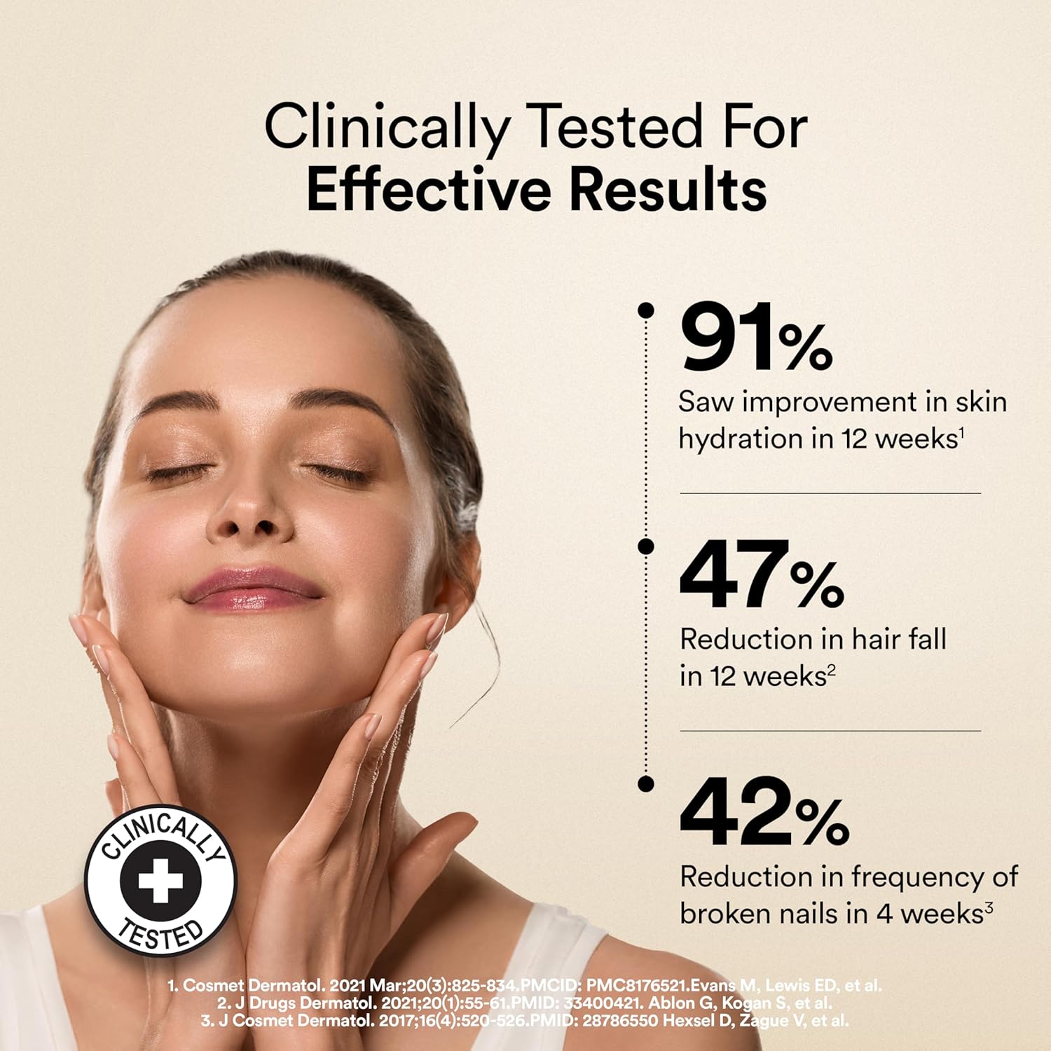 POWERFUL BLEND WITH CLINICALLY PROVEN ANTI-AGING BENEFITS: Backed by clinical research, this is scientifically formulated to boost skin elasticity, improve hydration, and reduce fine lines and wrinkles. In just 28 days, skin elasticity increases by 63.87%, while 8 weeks of consistent use results in a 39% reduction in fine lines. By Week 12, wrinkle depth decreases by 35%, restoring firmness and youthful radiance. Infused with Korean Marine Collagen Peptides, Hyaluronic Acid, Biotin, and Vitamins C & E, this powerful formula hydrates skin, enhances collagen production, and strengthens skin structure, ensuring smooth, plump, and glowing skin from within.