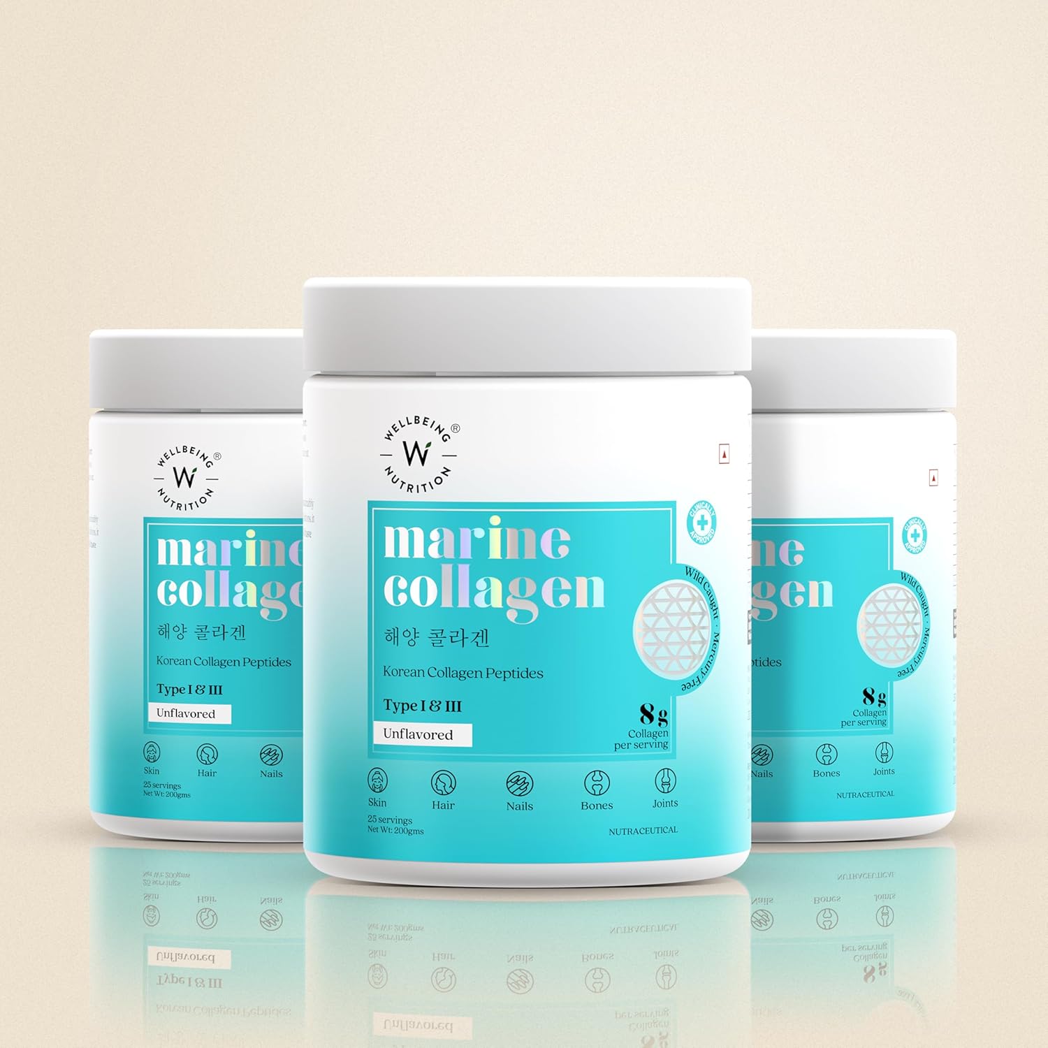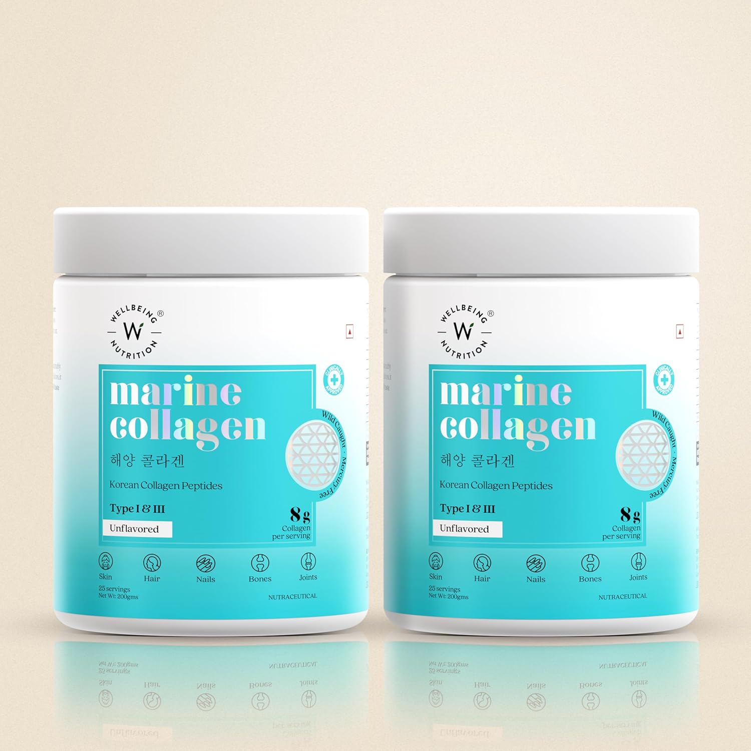 100% PURE & HIGHLY BIOAVAILABLE MARINE COLLAGEN: Wellbeing Nutrition’s Platinum-Grade Korean Marine Collagen Peptides are sustainably sourced from wild-caught fish, ensuring transparency, purity, and superior quality. This single-ingredient, unflavored collagen is enzymatically processed to preserve peptide integrity, making it easy to mix and dissolve into any liquid. Hydrolyzed and agglomerated for enhanced absorption, it features Type 1 & 3 collagen peptides with a low 3000 Dalton molecular weight, delivering 100% bioavailability for optimal skin, hair, joint, and overall wellness support.