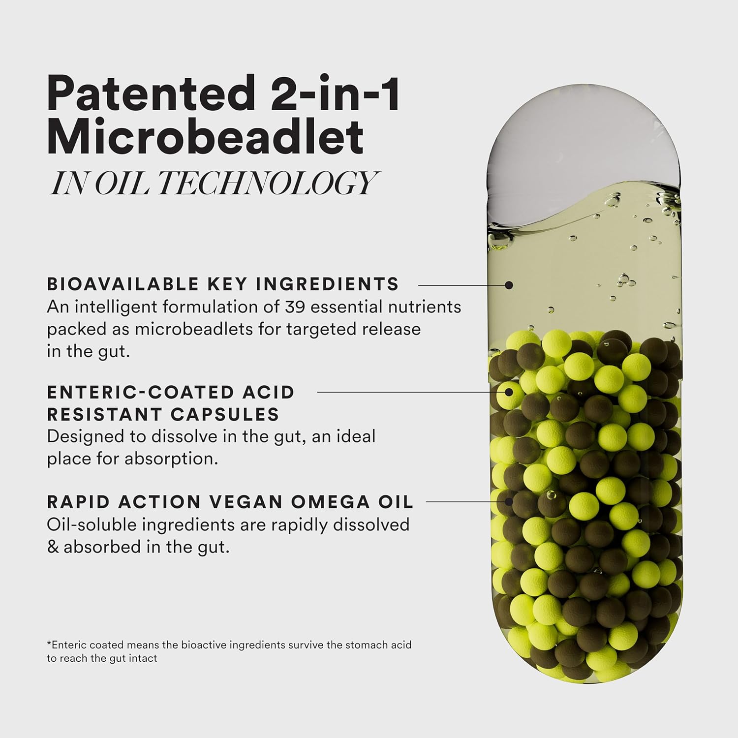 ADVANCED 2-IN-1 SLOW-RELEASE TECHNOLOGY FOR MAXIMUM ABSORPTION: Multi + Omega 50+ Slow is crafted with innovative slow-release technology, providing a steady and sustained absorption of its nutrients throughout the day. The blend of fast-absorbing vegan omega oil with slow-release beadlets enhances bioavailability, ensuring optimal absorption in the gut’s less sensitive areas for maximum effectiveness.